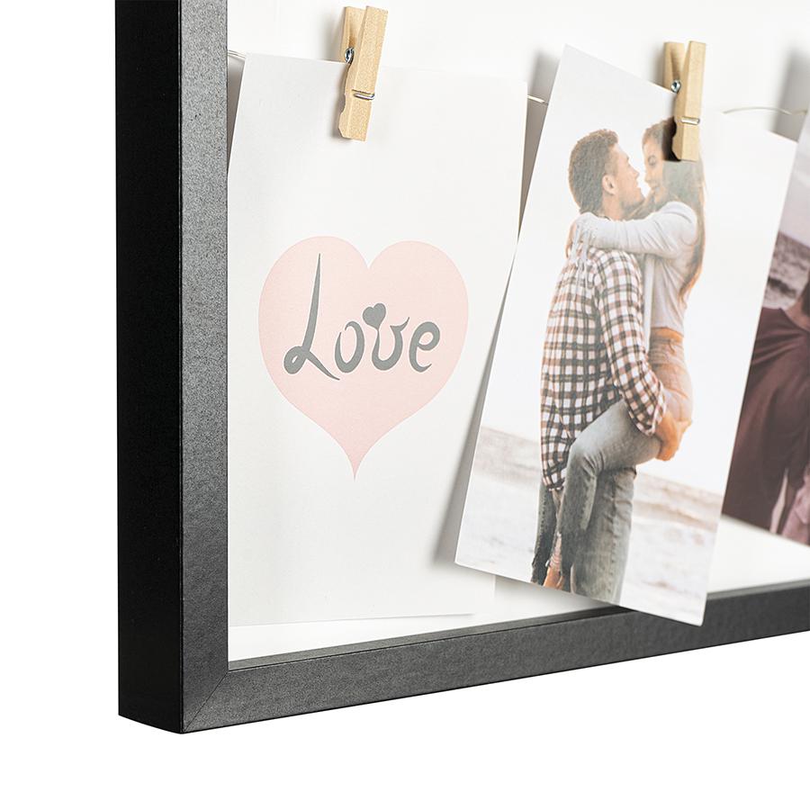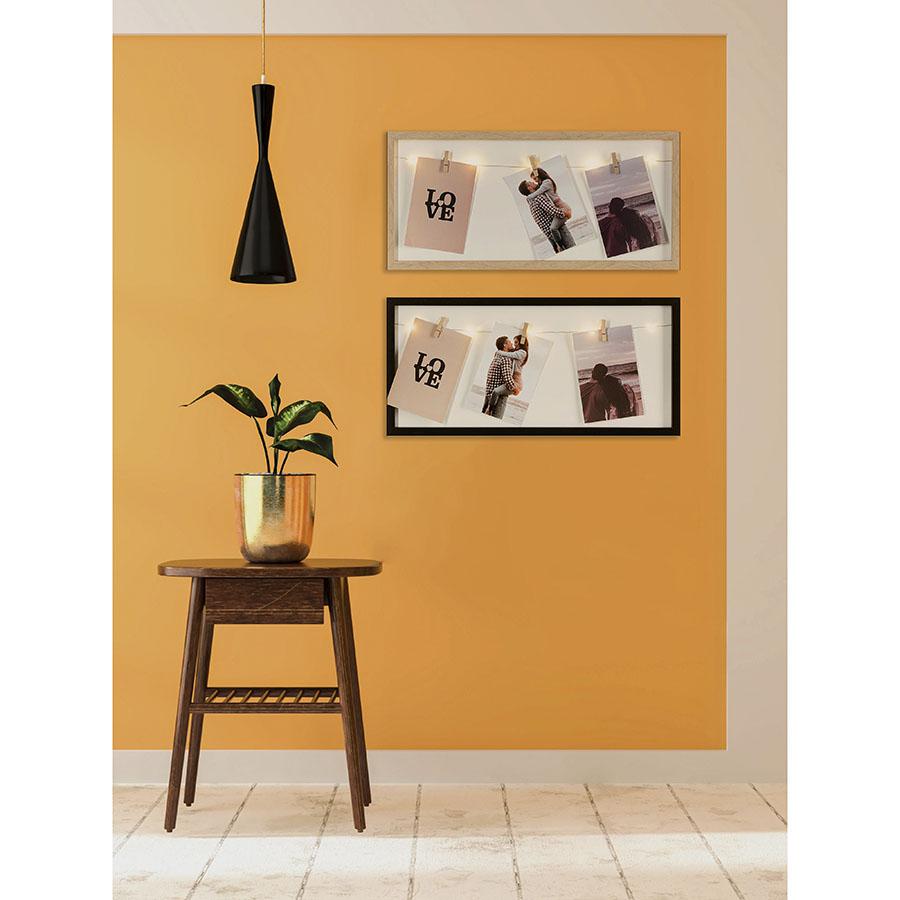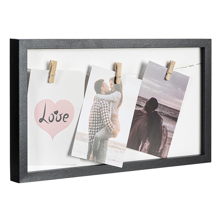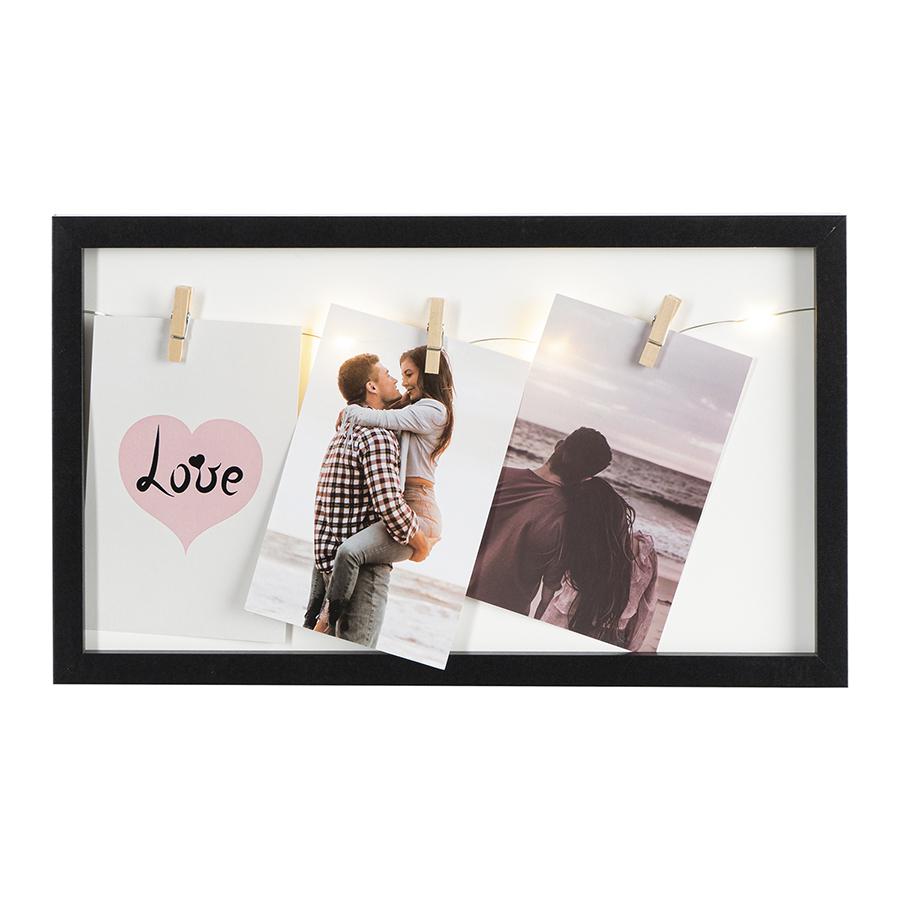 Рамка для фотографий с подсветкой Everyday – прекрасный способ создать в любом пространстве теплую, уютную атмосферу. Этот настенный аксессуар идеально подходит для красивого оформления и демонстрации памятных моментов, может использоваться в качестве мудборда и интерьерного декора. Рамка работает от двух батареек типа ААА, которые приобретаются отдельно. Особенности и преимущества: - Три деревянные прищепки в комплекте. - Незаметный отсек для батареек. - Современный минималистичный дизайн. - Универсальное использование: фоторамка, мудборд, декор, подсветка. Материалы: МДФ, бумага, дерево. Размеры: 22х38 см. Цвет: черный. Пыль и загрязнения удалять при помощи мягкого влажного материала.