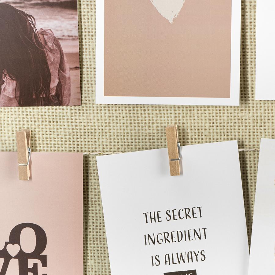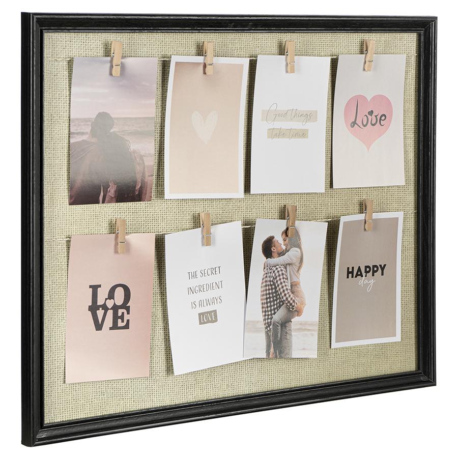 Рамка для фотографий Everyday – прекрасный способ создать в любом пространстве теплую, уютную атмосферу. Этот настенный аксессуар идеально подходит для красивого оформления и демонстрации памятных моментов, может использоваться в качестве мудборда и интерьерного декора. Особенности и преимущества: - Восемь деревянных прищепок в комплекте. - Современный минималистичный дизайн. - Универсальное использование: фоторамка, мудборд, декор. Материалы: МДФ, бумага, дерево. Размеры: 43х53 см. Пыль и загрязнения удалять при помощи мягкого влажного материала.