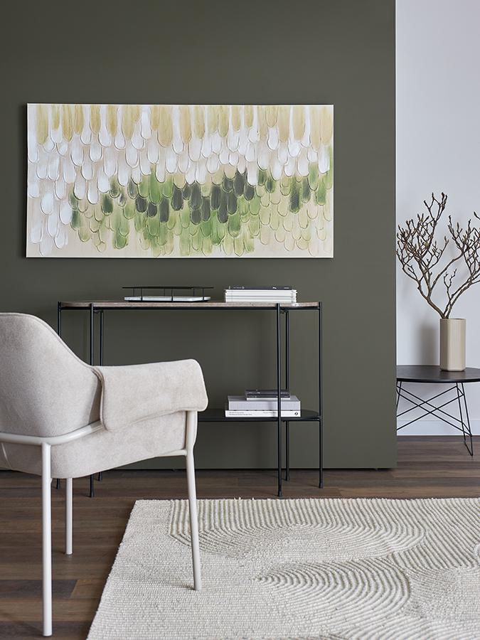 Панно декоративное с ручной росписью By Feel поможет подчеркнуть индивидуальность интерьера и привнесет в оформление пространства энергию творчестваПанно декоративное с ручной росписью By Feel поможет подчеркнуть индивидуальность интерьера и привнесет в оформление пространства энергию творчества. Особенности и преимущества: - Ручная роспись с использованием акриловых красок делает каждое панно уникальным. - Сочетание таких материалов, как дерево и ткань обеспечивает изделию долговечность и отлично комбинируется с различными интерьерными решениями. - Декор в минималистичном стиле идеально подходит для оформления пространств с современным дизайном. ! Обращаем ваше внимание, что этот предмет изготовлен вручную и может быть не идеален. Небольшие неровности, потертости и различия в цвете – это не брак, а индивидуальная особенность товара, произведенного ручным способом. Материалы: холст, дерево. Размеры: 140х70 см. Цвет: хаки. Пыль с поверхности можно удалять при помощи специальной мягкой щетки.. Особенности и преимущества: - Ручная роспись с использованием акриловых красок делает каждое панно уникальным. - Сочетание таких материалов, как дерево и ткань обеспечивает изделию долговечность и отлично комбинируется с различными интерьерными решениями. - Декор в минималистичном стиле идеально подходит для оформления пространств с современным дизайном. ! Обращаем ваше внимание, что этот предмет изготовлен вручную и может быть не идеален. Небольшие неровности, потертости и различия в цвете – это не брак, а индивидуальная особенность товара, произведенного ручным способом. Материалы: холст, дерево. Размеры: 140х70 см. Цвет: хаки. Пыль с поверхности можно удалять при помощи специальной мягкой щетки.