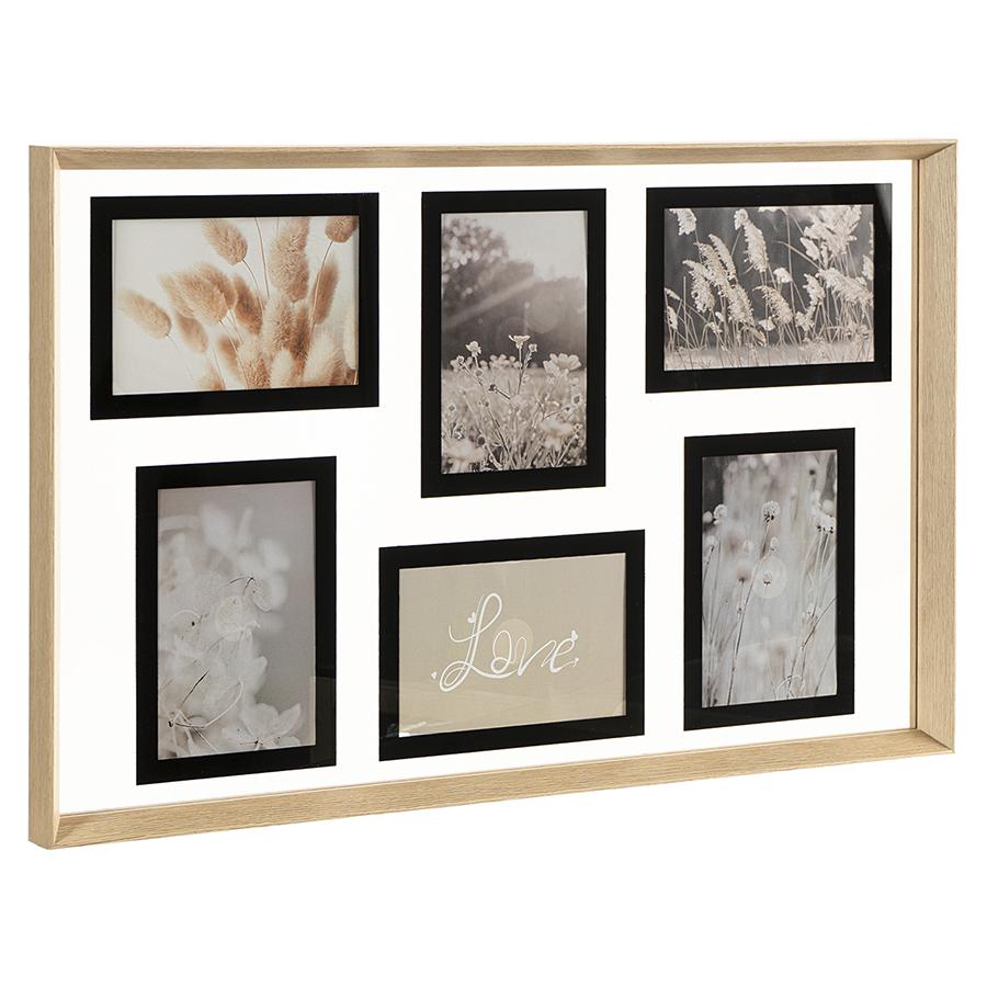 Рамка для фотографий Pleasant moments – функциональный декор, который идеально дополнит интерьер с современным дизайном. Особенности и преимущества: - В рамке можно одновременно разместить шесть фотографий стандартных размеров 10х15 см. - Модель с настенным типом монтажа позволяет экономить полезное пространство в помещении. - Аксессуар с минималистичным дизайном отлично вписывается в любые интерьерные решения. Материалы: МДФ, стекло, ПВХ, бумага. Размеры: 35х55 см. Цвет: белый/натуральное дерево. Пыль и загрязнения удалять при помощи мягкого влажного материала.
