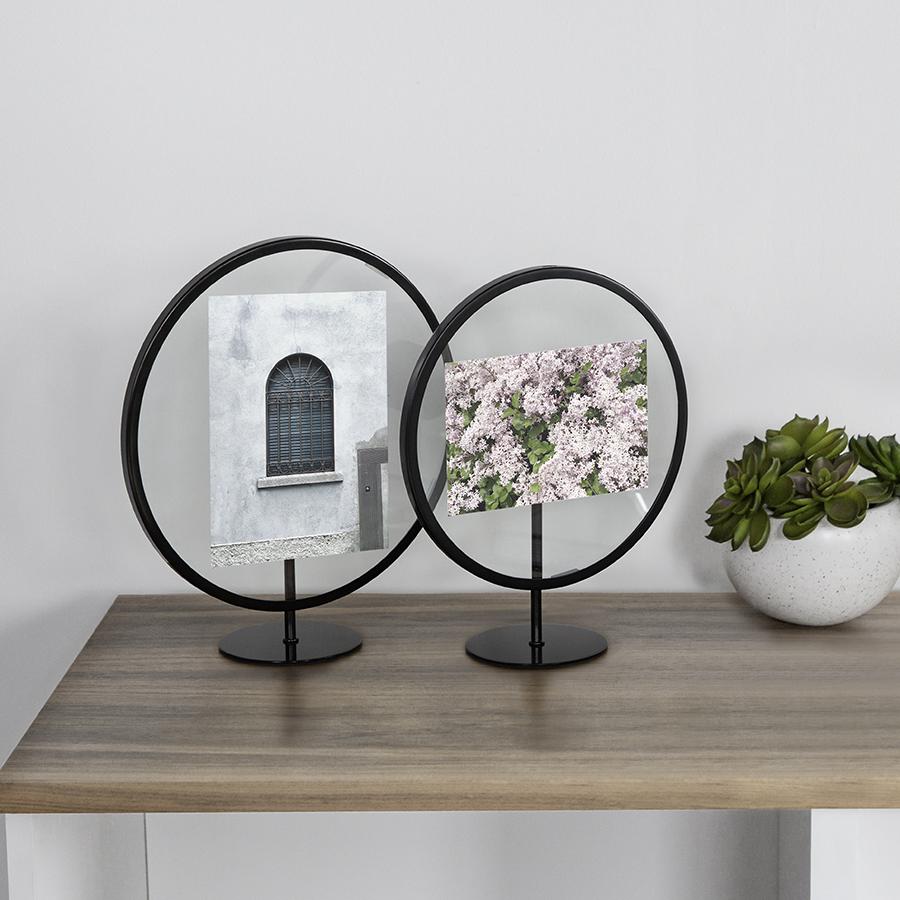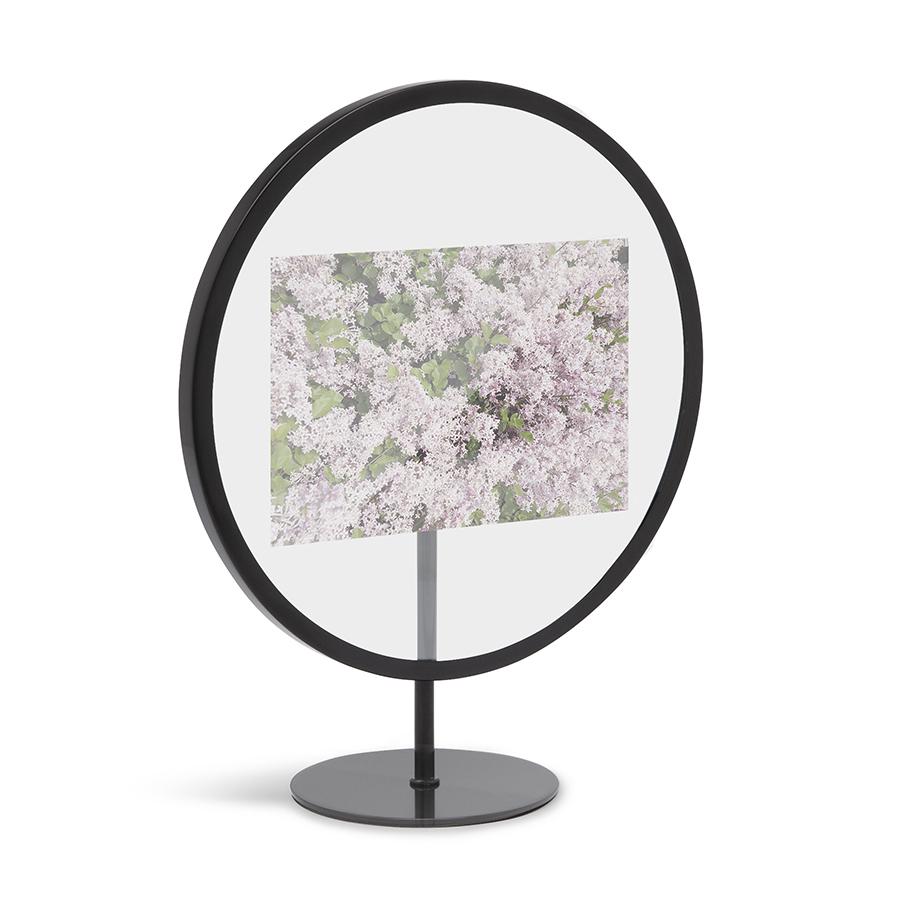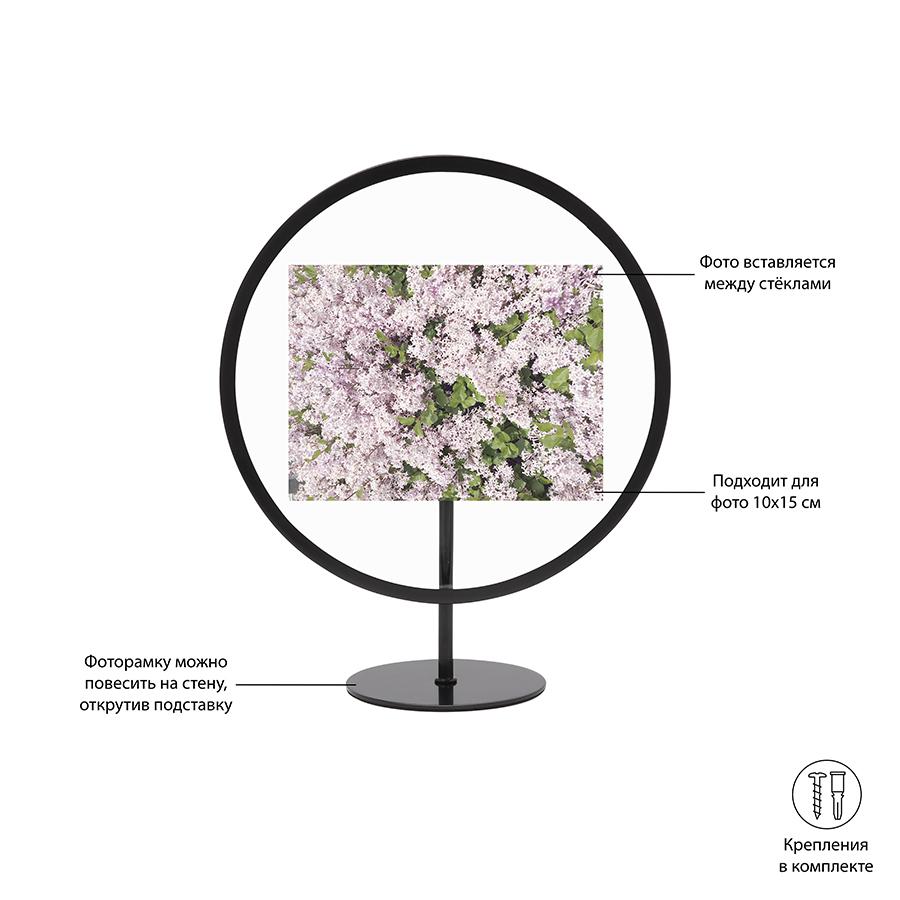 Фоторамка Infinity – привлекательный аксессуар, который станет оригинальным дополнением в интерьере спальни, гостиной, кабинета или детской комнаты. Конструкция изделия позволяет размещать фотографию между двух стеклянных панелей, тем самым защищая ее загрязнения и выгорания. Корпус круглой формы выполнен из качественного металла, стойкого к коррозии и ультрафиолетовым лучам. Фоторамку можно прикрепить к стене или поставить на стол, полку или комод. Материал: сталь, стекло, АБС-пластик. Размеры: 22х10х27 см. Цвет: черный. Пыль и загрязнения удалять при помощи мягкой влажной салфетки. Запрещается использование агрессивной бытовой химии и абразивных материалов.
