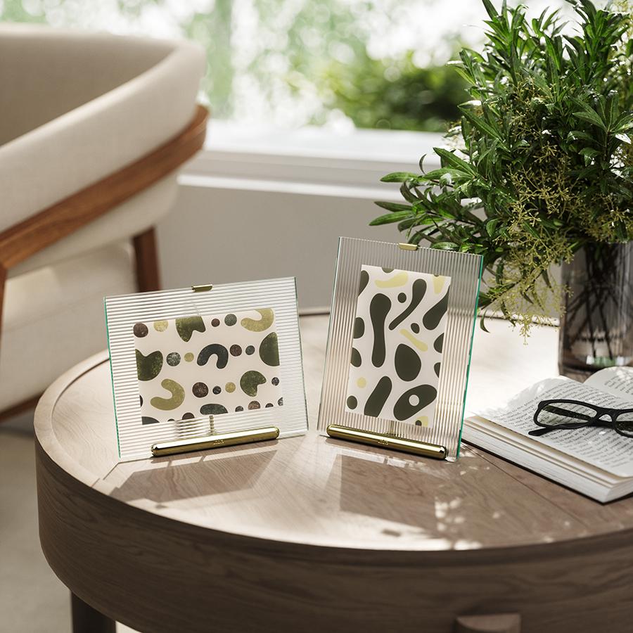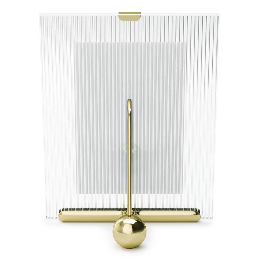 Фоторамка Flute из ребристого стекла подчеркнет красоту ваших снимков и украсит интерьер. Благодаря минималистичному дизайну она легко впишется в различные стили оформления, а практичные материалы обеспечат удобное использование. Рамка имеет устойчивое металлическое основание и подходит для фотографий формата 10х15 см и 13х18 см. Материалы: цинк, стекло, сталь. Размеры: 16х11х20 см. Цвет основания: латунь. Пыль и загрязнения можно удалять при помощи мягкого влажного материала. Запрещается использование абразивов и агрессивной бытовой химии.