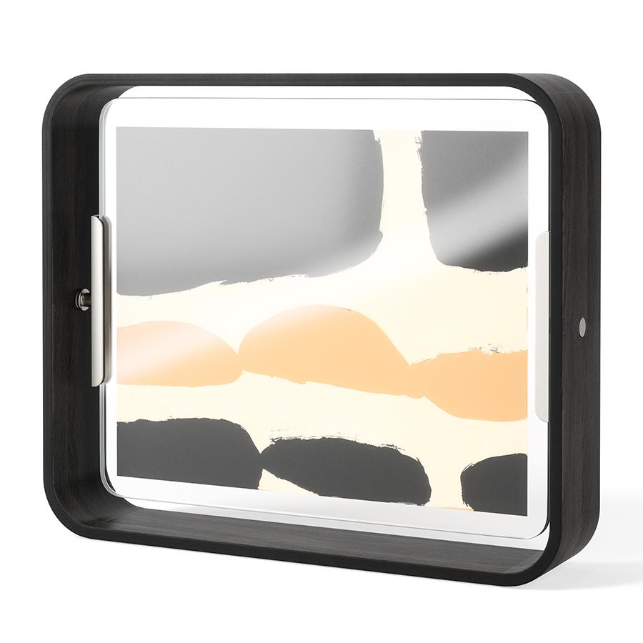 Фоторамка Bellwood добавит природное очарование в любое пространство, будь то жилая комната, кабинет или офис. Центральная часть рамки плавно вращается, что дает возможность демонстрировать поочередно две фотографии форматом 10х15 или 13х18. Специальная конструкция позволяет менять параметры ориентации и размещать изображения как в портретном, так и альбомном режиме. Сочетание натуральной древесины и стекла обеспечивает изделию практичность, долговечность и привлекательный вид. Материалы: бук, стекло, тополь, древесина павловнии, сталь. Размеры: 26х6х31 см. Цвет: черный. Пыль и загрязнения можно удалять при помощи мягкого влажного материала. Запрещается использование абразивов и агрессивной бытовой химии.