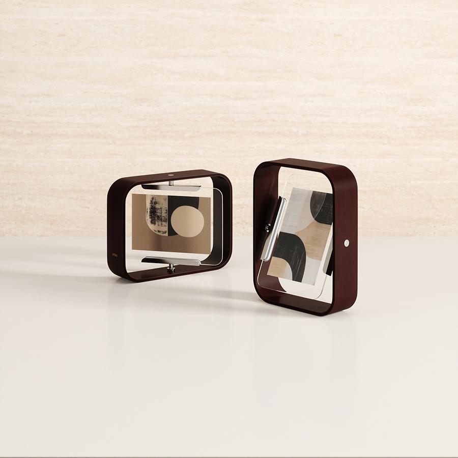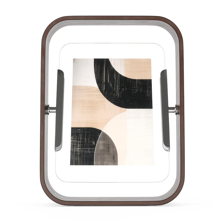 В фоторамке Bellwood тепло натурального дерева органично сочетается с современным дизайнерским решением. Ее конструкция позволяет менять фотографии и ракурсы одним легким движением, создавая постоянно обновляющуюся галерею ваших самых ярких воспоминаний. Особенности и преимущества: - Изделие оптимально для горизонтальных и вертикальных фотографий размером 10х15 или 13х18 см. - Рамка изготовлена из массива дерева, добытого из возобновляемых источников. - Уникальный рисунок волокон и теплая текстура делают каждый экземпляр неповторимым, добавляя в интерьер нотку природной гармонии. - Вращение на 360° и двусторонняя конструкция позволяет легко переключаться между портретной и альбомной ориентацией, а также менять само изображение. - Рамка одновременно вмещает два снимка позволяя создать эффект «парящего» фото. - Целостный дизайн с плавными изгибами органично впишется в любой стиль интерьера. Материалы: тополь, стекло, бук, сталь. Размеры: 16х5х22 см. Цвет: состаренный орех. Рекомендуется протирать чистой влажной тканью.