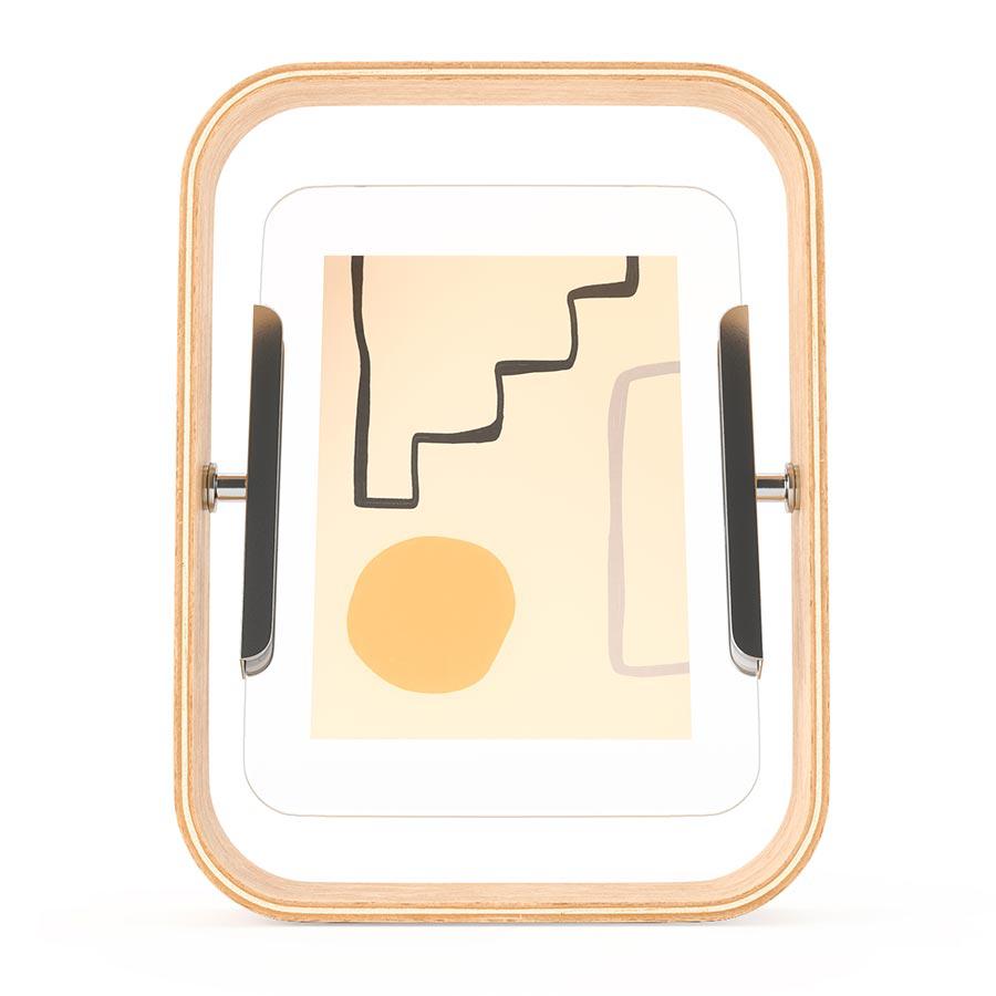 В фоторамке Bellwood тепло натурального дерева органично сочетается с современным дизайнерским решением. Ее конструкция позволяет менять фотографии и ракурсы одним легким движением, создавая постоянно обновляющуюся галерею ваших самых ярких воспоминаний. Особенности и преимущества: - Изделие оптимально для горизонтальных и вертикальных фотографий размером 10х15 или 13х18 см. - Рамка изготовлена из массива дерева, добытого из возобновляемых источников. - Уникальный рисунок волокон и теплая текстура делают каждый экземпляр неповторимым, добавляя в интерьер нотку природной гармонии. - Вращение на 360° и двусторонняя конструкция позволяет легко переключаться между портретной и альбомной ориентацией, а также менять само изображение. - Рамка одновременно вмещает два снимка позволяя создать эффект «парящего» фото. - Целостный дизайн с плавными изгибами органично впишется в любой стиль интерьера. Материалы: тополь, стекло, бук, сталь. Размеры: 16х5х22 см. Цвет: натуральное дерево. Рекомендуется протирать чистой влажной тканью.
