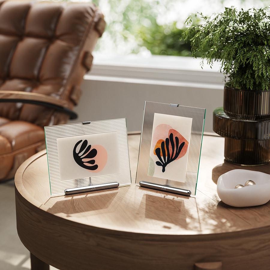 Фоторамка Flute превращает обычную фотографию в художественное произведение. Ребристая текстура стекла создает эффект легкой воздушности. Полированный металл добавляет благородного сияния, придавая изображению глубину и утонченность. Особенности и преимущества: - Рамка подходит для фотографий различных размеров: 10х15 или 13х18 см, что делает ее универсальным решением для разных снимков. - Изделие можно установить в портретной или альбомной ориентации. - Уникальная подставка в виде встроенного мольберта придает композиции завершенный вид и устойчивость. - Каждая металлическая деталь тщательно отполирована вручную, что гарантирует изделию неповторимый блеск и эксклюзивность. Материалы: цинк, стекло, сталь. Размеры: 16х11,4х20 см. Цвет основания: хром. Пыль и загрязнения можно удалять при помощи мягкого влажного материала. Запрещается использование абразивов и агрессивной бытовой химии.