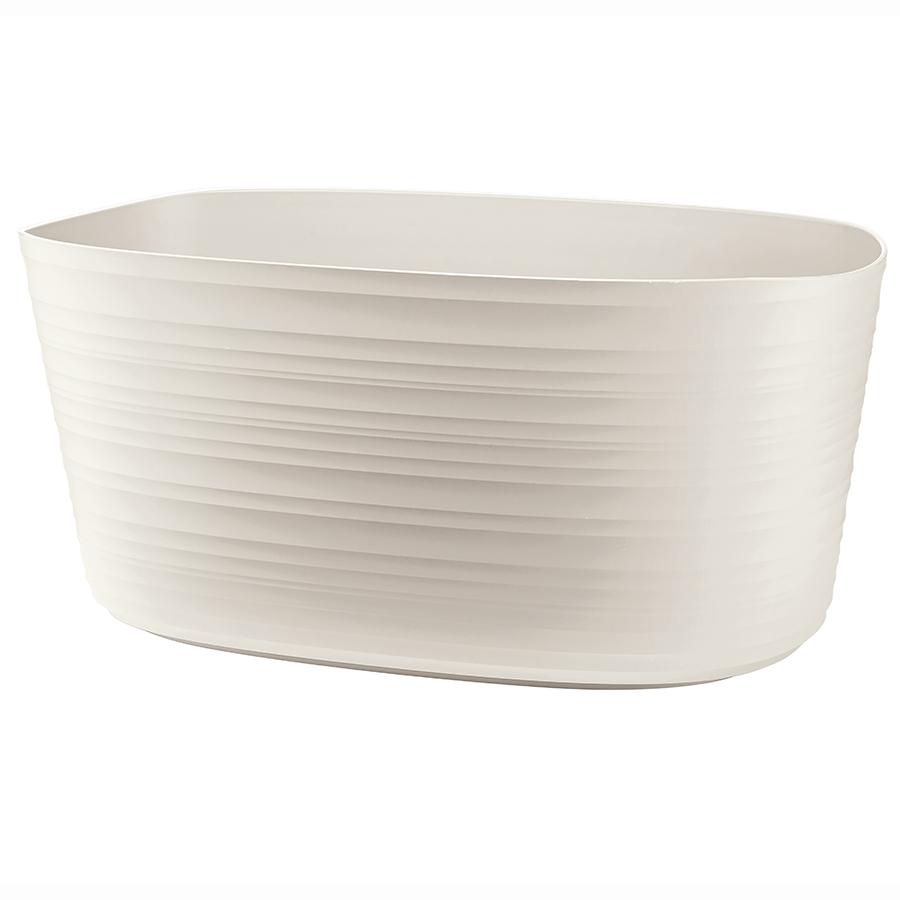 Кашпо для комнатных растений выполнено из переработанного пластика. Дизайн изделия напоминает керамику, а реалистичности внешнему виду придают тщательно подобранные пастельные тона и неровные круговые узоры, создающие эффект ручной работы. Кашпо отлично гармонирует с другими предметами из коллекции Tierra. Материал: переработанный пластик. Размеры: 39х23х18 см. Цвет: молочный. От загрязнений очищать в теплой мыльной воде с помощью мягкой губки.