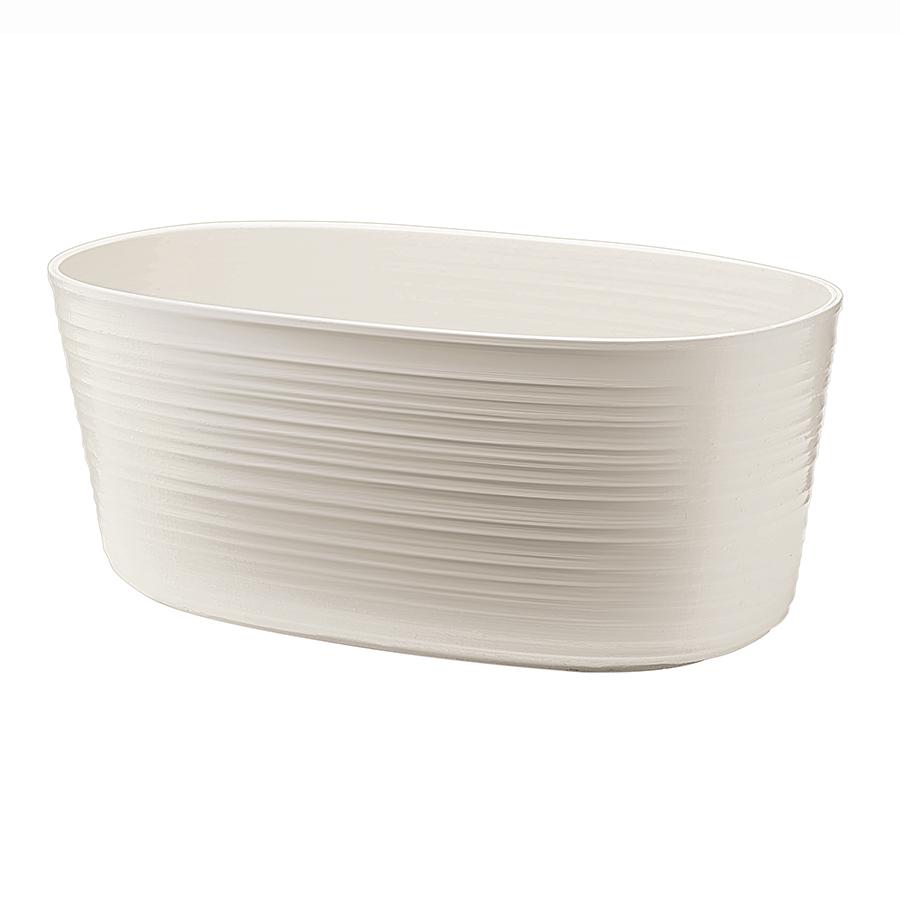 Кашпо для комнатных растений выполнено из переработанного пластика. Дизайн изделия напоминает керамику, а реалистичности внешнему виду придают тщательно подобранные пастельные тона и неровные круговые узоры, создающие эффект ручной работы. Кашпо отлично гармонирует с другими предметами из коллекции Tierra. Материал: переработанный пластик. Размеры: 30х15,7х12,8 см. Цвет: молочный. От загрязнений очищать в теплой мыльной воде с помощью мягкой губки.