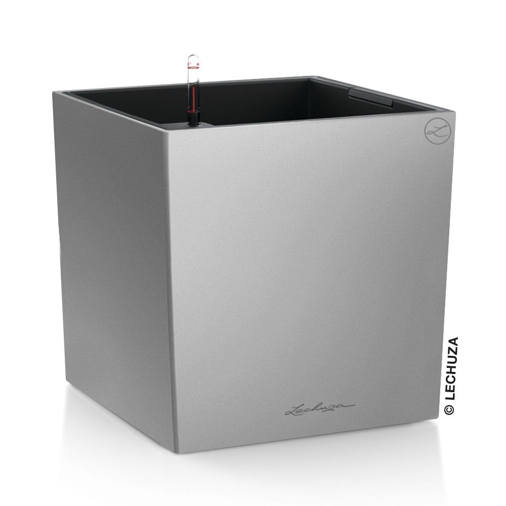 Кашпо Lechuza 16368 Кашпо LECHUZA Кьюб 40 Серебристый металлик с системой полива арт. ZN-301093