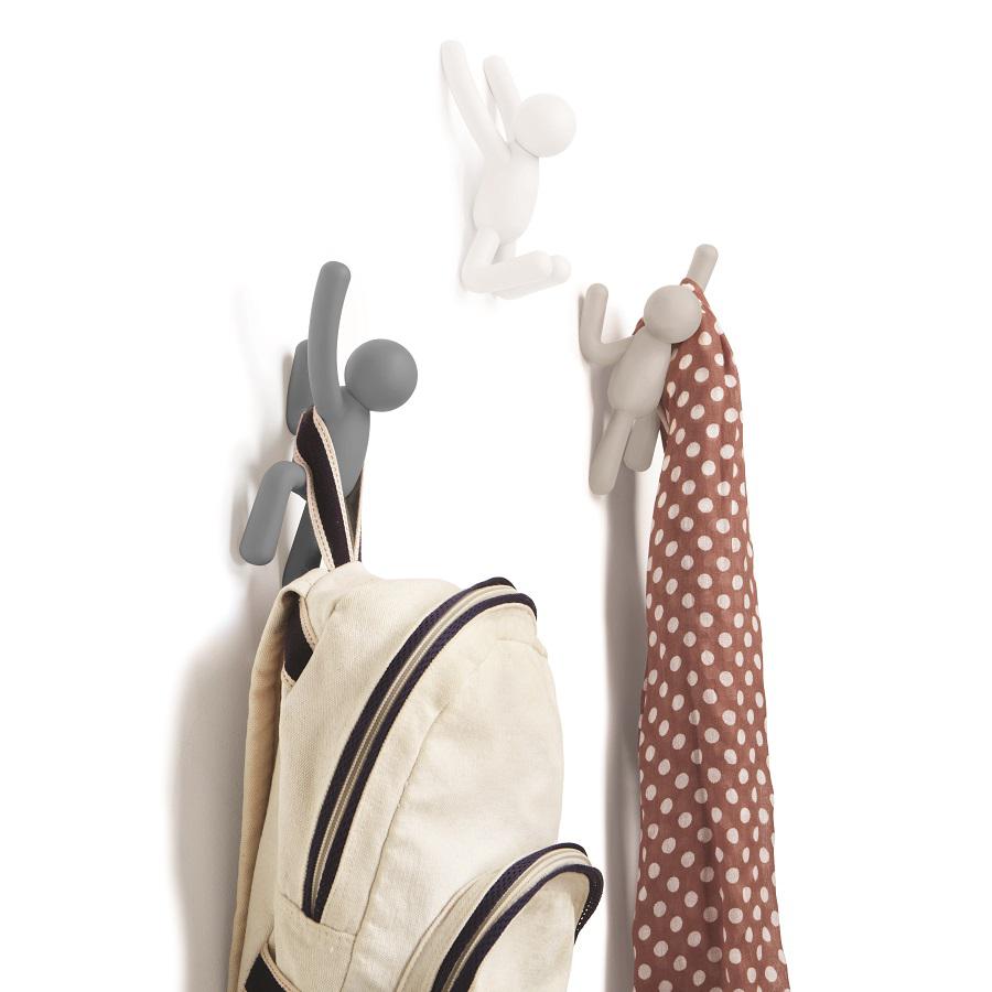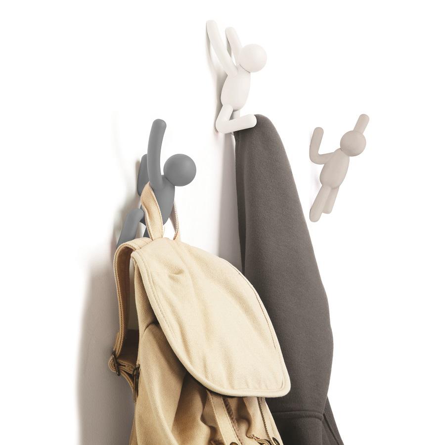 Настенные крючки Buddy в форме забавных человечков помогут навести порядок и украсят пространство. Аксессуары из мягкой резины выдерживают нагрузку до 2,2 кг. Каждый крючок имеет 2 отверстия для подвешивания на шурупы. Крепления – в комплекте.