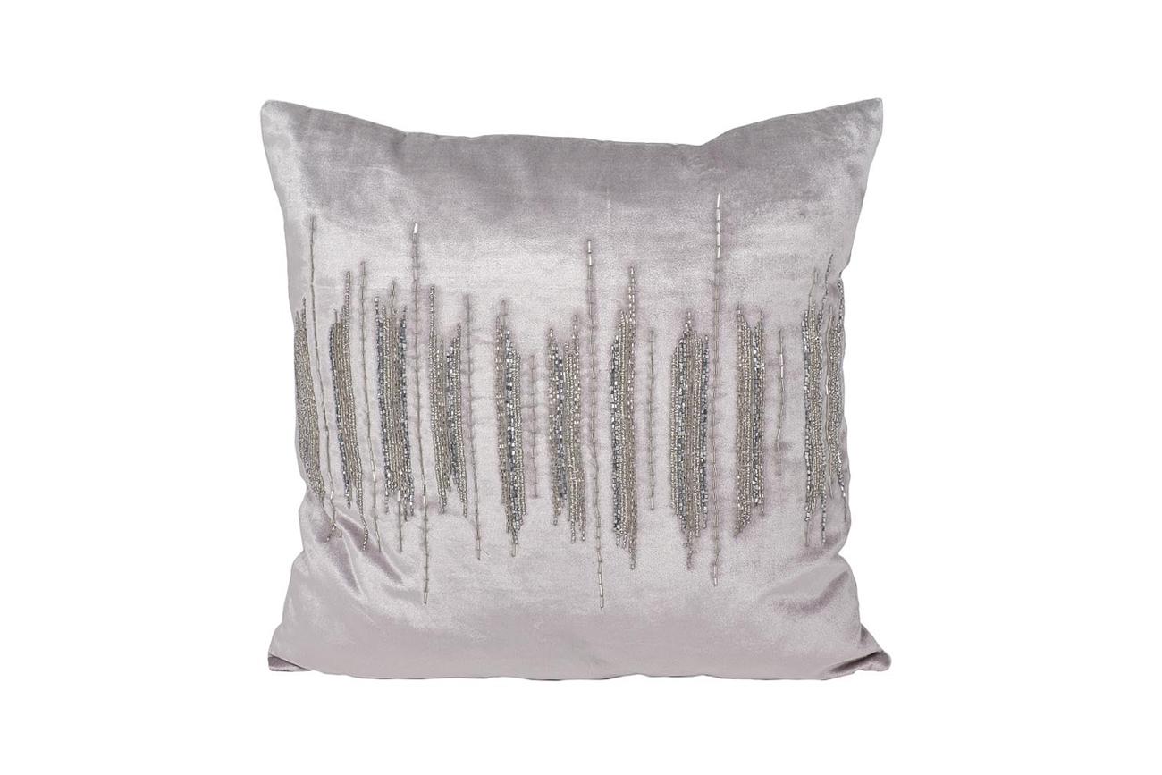description-full - Декоративные подушки в интерьере гостиной обладают настоящей магией – они способны подчеркнуть достоинства интерьера и даже преобразить его без существенных изменений. У модели мягкая бархатистая поверхность, насыщенный серый цвет, упругий наполнитель. А еще на изделии – узор в виде прямых линий, вышитых бисером. Параллельные линии – стильный лаконичный орнамент, уместный в любом современном интерьере. С его помощью можно зрительно увеличить помещение. Задумываясь, где купить декоративные подушки, обратите внимание на наш каталог, в котором богатый выбор премиального текстиля для дома.