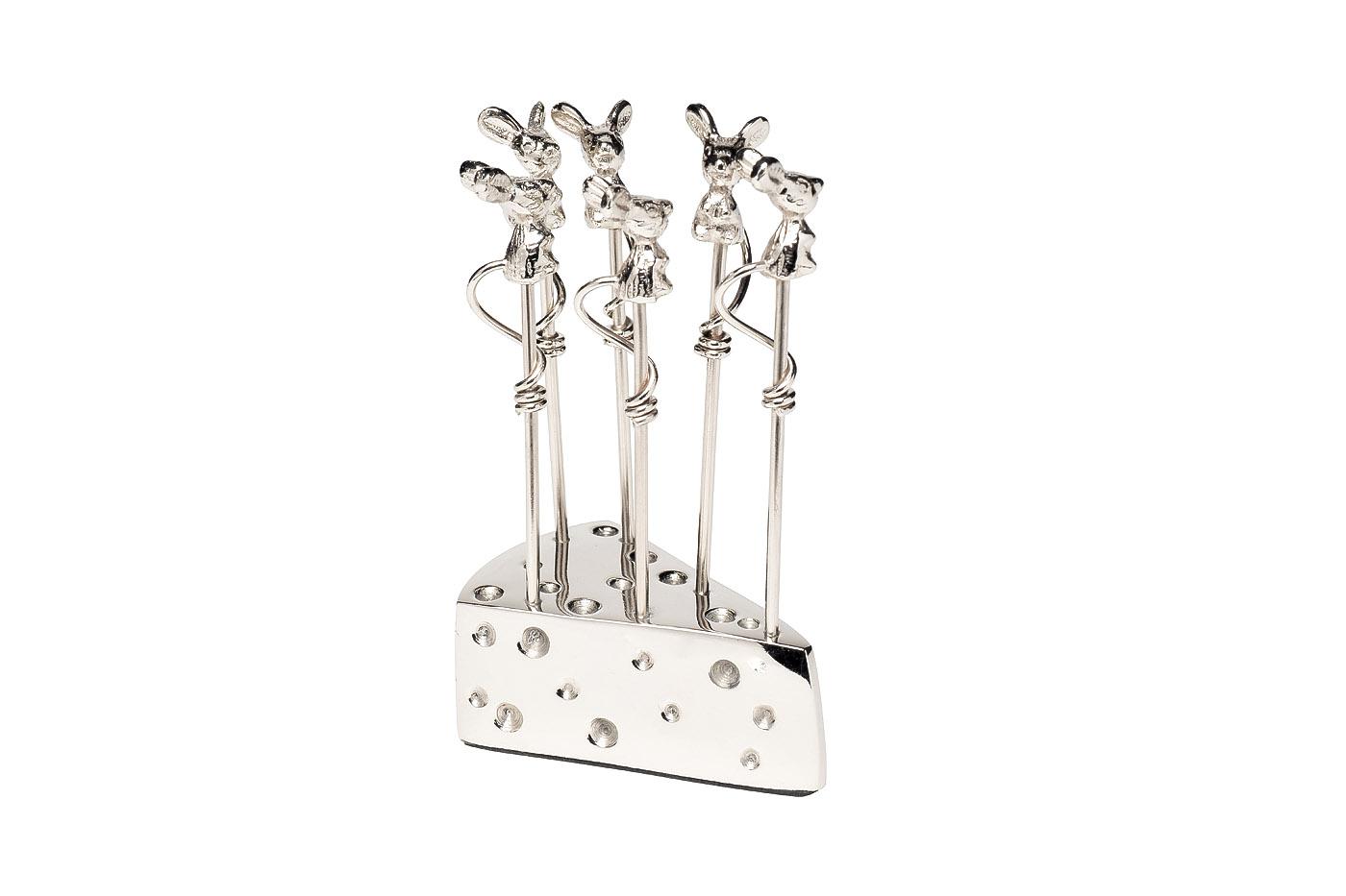 Подарок Garda Decor 95IM-2444 Шпажки на подставке "Мыши" 6шт. нерж. сталь 9*6*13см арт. 95IM-2444