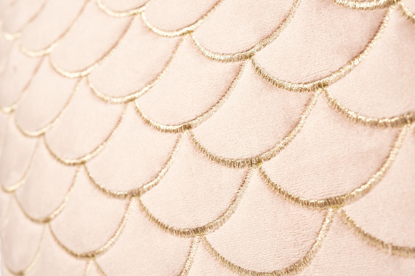 description-full - Декоративная розовая подушка, купить которую стоит для создания уютной атмосферы. У модели мягкая бархатистая поверхность и классическая прямоугольная форма. На изделие нанесена вышивка в форме золотистых «чешуек», которая органично вписывается в современный дизайн спальни или гостиной. Выбирайте великолепные декоративные подушки с вышивкой в сочетании с портьерами, тюлем, покрывалами от Garda Decor.