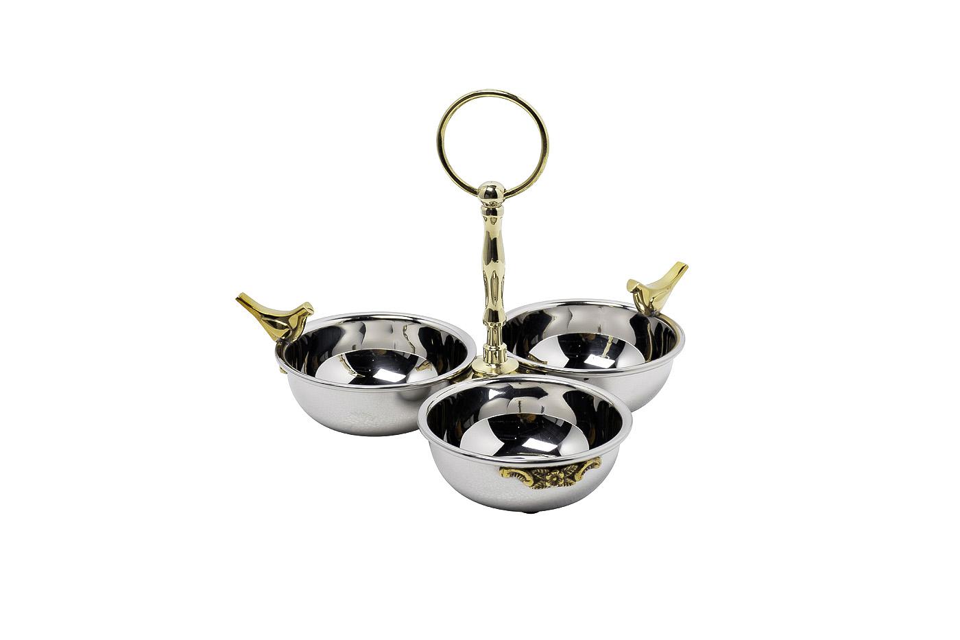 Подарок Garda Decor 95IM-0099 Менажница "Birds" 3 чаши н/ж сталь d21*17см арт. 95IM-0099