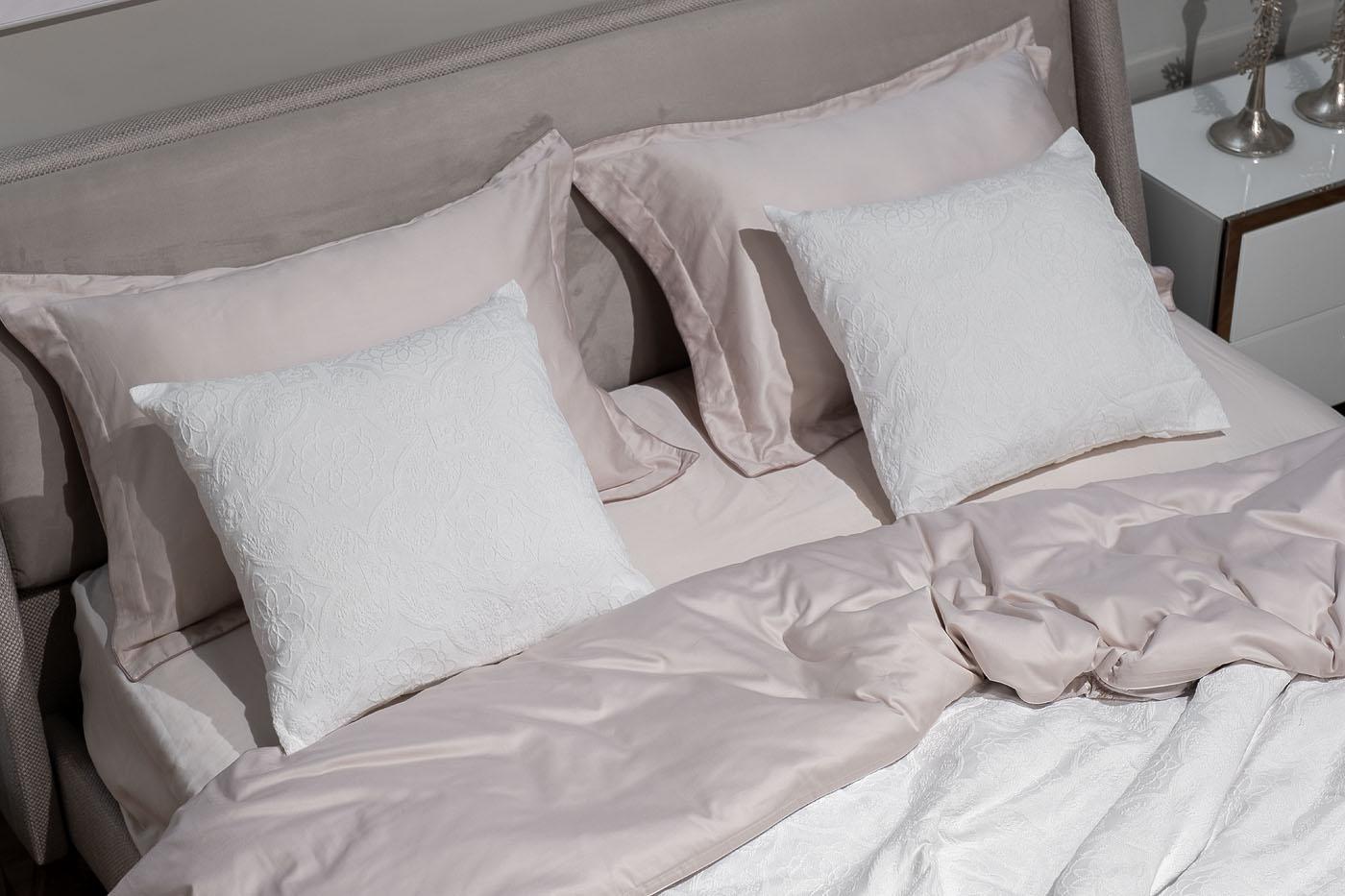 description-full - Наволочка декоративная «Тиара» изготовлена из экологичного хлопка в сочетании с практичным и долговечным полиэстером. Ткань легко чистится и стирается в домашних условиях, быстро сохнет. Добавление полиэфирного волокна увеличивает срок службы изделия и его устойчивость к выгоранию. Жаккардовый рисунок в классическом стиле будет актуален во все времена, а белый цвет освежит и украсит дизайн вашего дома. Несколько таких подушек, дополненных покрывалом «Тиара», добавят романтических ноток в атмосферу спальни. УХОД: Ручная или машинная стирка при температуре не выше 40 градусов. Гладить при низкой температуре до 110 градусов. Отбеливание запрещено. Барабанная сушка и отжим в стиральной машине при низкой температуре. Сухая химчистка разрешена.