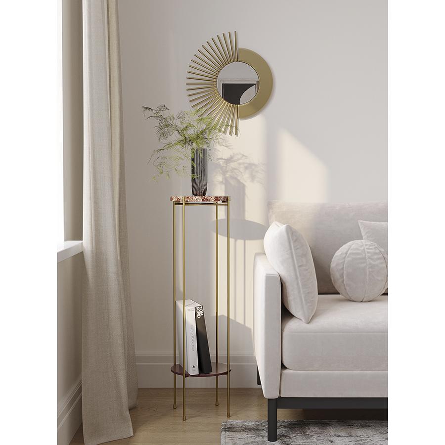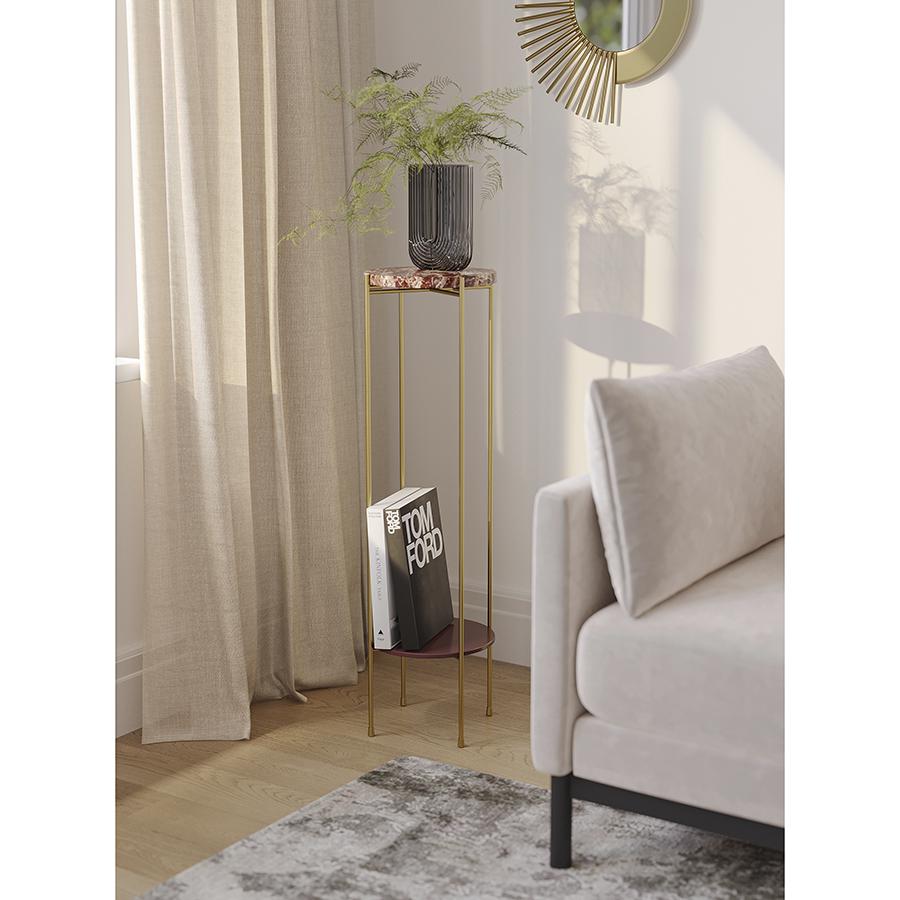 Подставка декоративная Ube от бренда Bergenson Bjorn сделает любой интерьер более комфортным и функциональным. На ней можно удобно разместить комнатные растения, декор и любые другие предметы. Дизайн актуален как для современных, так и классических стилей. Особенности и преимущества: - Сочетание мрамора, стекла и железа обеспечивает аксессуару презентабельный вид и высокую устойчивость к износу. - Материалы являются экологичными, практичными, долговечными, хорошо очищаются от загрязнений. - Благодаря компактности и небольшому весу аксессуар можно легко перемещать и устанавливать в любом удобном месте. - Наличие двух столешниц позволяет размещать больше предметов. ! Обращаем ваше внимание, что этот предмет изготовлен вручную и может быть не идеален. Небольшие неровности, потертости и различия в цвете – это не брак, а индивидуальная особенность товара, произведенного ручным способом. Материал: железо, мрамор, стекло. Диаметр: 30 см. Высота: 100 см. Важно! Натуральный мрамор не обладает водоотталкивающим эффектом. Структура материала пористая, из-за чего он может впитывать жидкости и другие вещества. Чтобы защитить поверхность от пятен, ее можно обработать специальными защитными средствами (пропитки для мрамора). Как ухаживать за поверхностью из мрамора: 1) Чтобы очистить поверхность из мрамора, протрите ее слегка влажной тканью, избегая длительного контакта с водой. Можно использовать мягкие чистящие жидкости, но не абразивные и не кислотные средства. 2) Образовавшиеся пятна можно очистить с помощью специальных средств для каменных поверхностей. 3) Защитная обработка: регулярно наносите защитный слой из пропитки для мрамора. Это позволит защитить поверхность и сделать ее более герметичной, устойчивой к появлению пятен. Можно использовать любую пропитку, которая подходит для натурального мрамора. 4) Использовать пропитку рекомендуется 1 раз в 6–12 месяцев, но не менее 1 раза в год, чтобы поддерживать ее защитный барьер от влаги, масел и грязи. Эта профилактическая мера помогает сохранить идеальный внешний вид камня и продлить срок его службы. 5) Постарайтесь избегать попадания масла и кислотных жидкостей на поверхность столешницы. Любую пролитую жидкость вытирайте насухо сразу же. 6) Во избежание появления новых пятен, используйте подставки под блюда, кружки, бокалы. 7) Не ставьте горячие и холодные емкости непосредственно на столешницу. 8) Не режьте на столешнице.