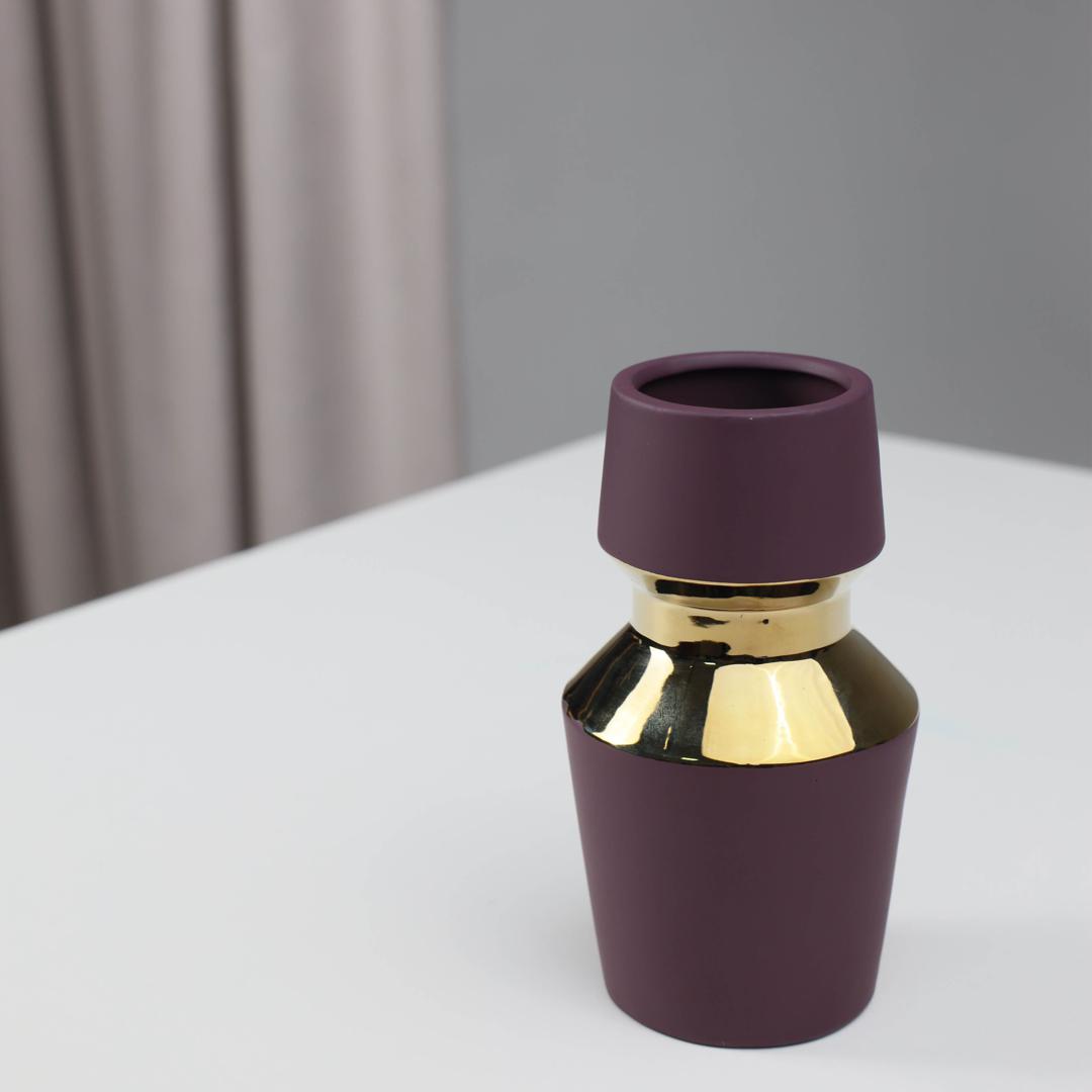 Ваза AksHome Ваза керамическая ASTOR, фиолетовый+золото, 11*20см арт. ZN-381589