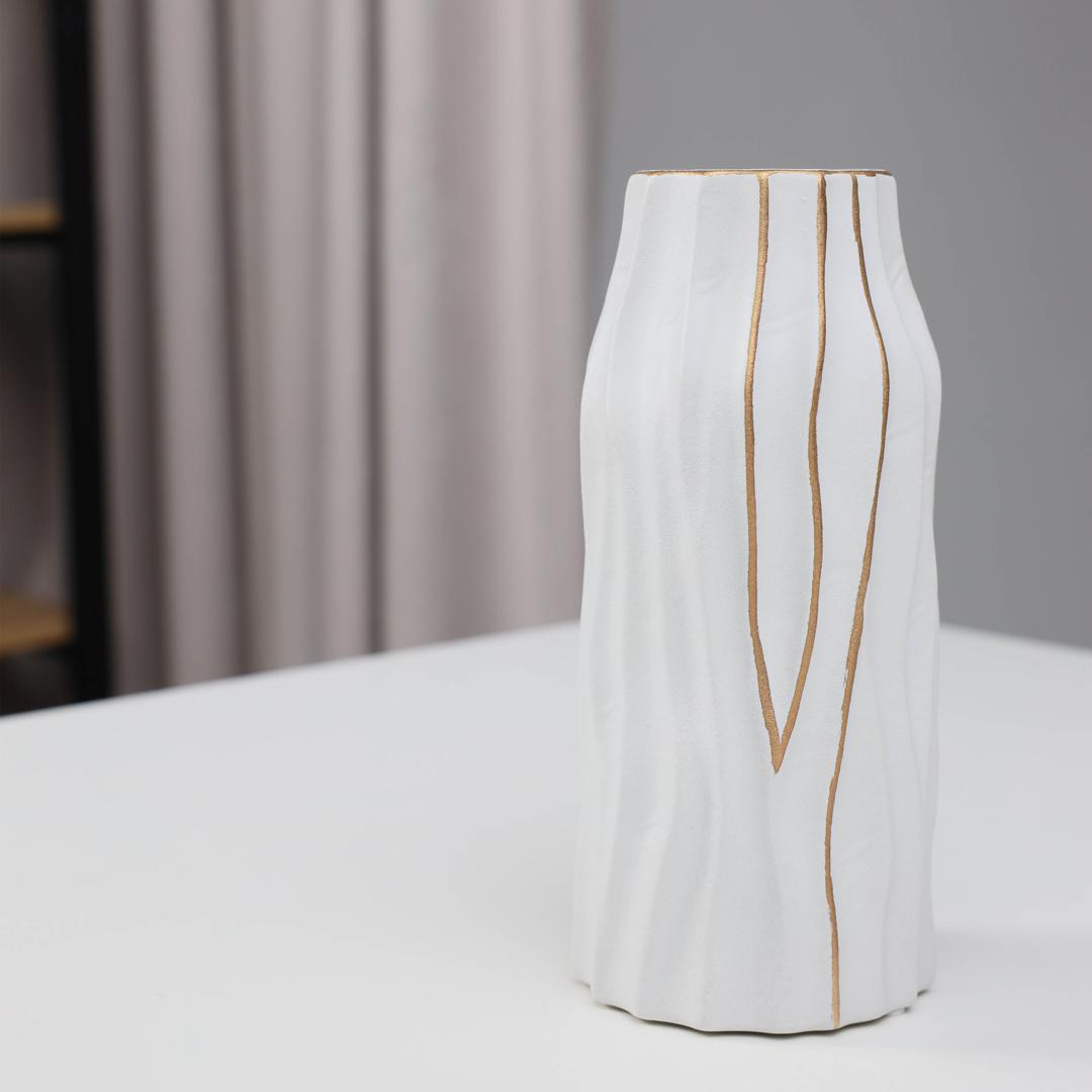 Ваза AksHome Ваза керамическая WOOD, белый, 10,5*10,5*24см арт. ZN-381599