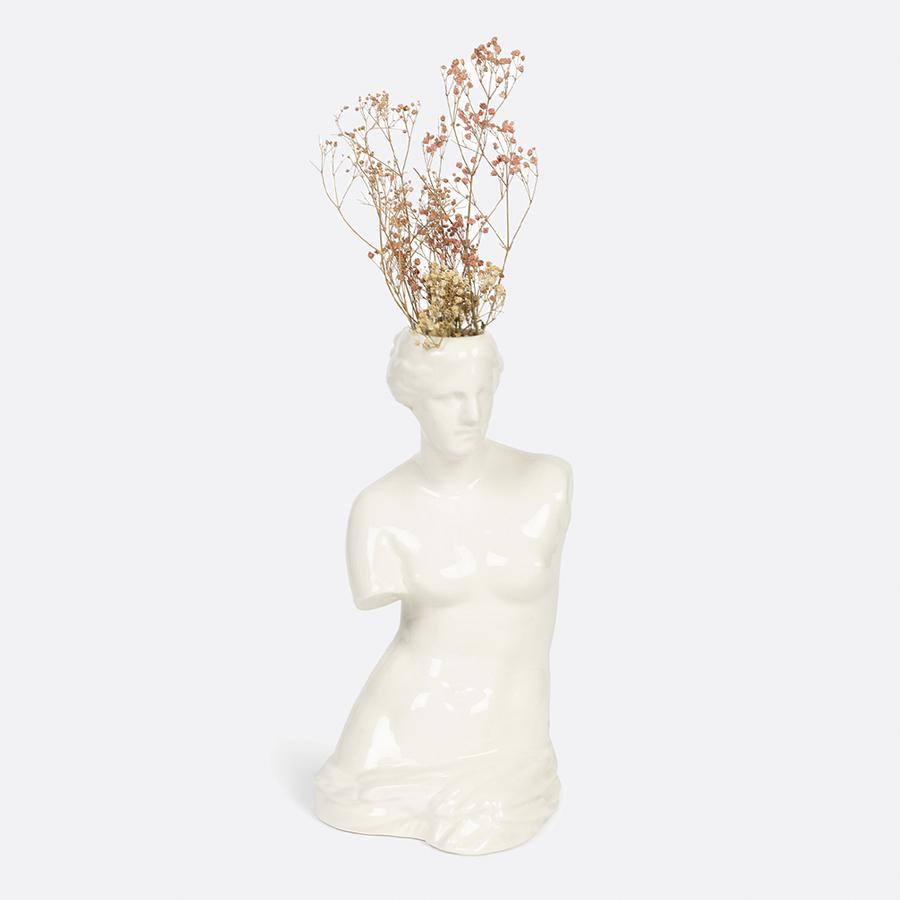 Стильная ваза Venus, выполненная в форме богини Венеры, – вдохновленный античным искусством аксессуар и подарок, способный ярко выразить любовь к близкому человеку. Скульптура с плавными изгибами подчеркнет красоту цветов и станет органичной частью как классического, так и современного интерьера. Экологически чистая керамика безвредна для окружающей среды. Материал: керамика. Размеры: 16x16x31 см. Рекомендуется протирать влажной мягкой тканью или мыть в теплой воде с жидким средством.