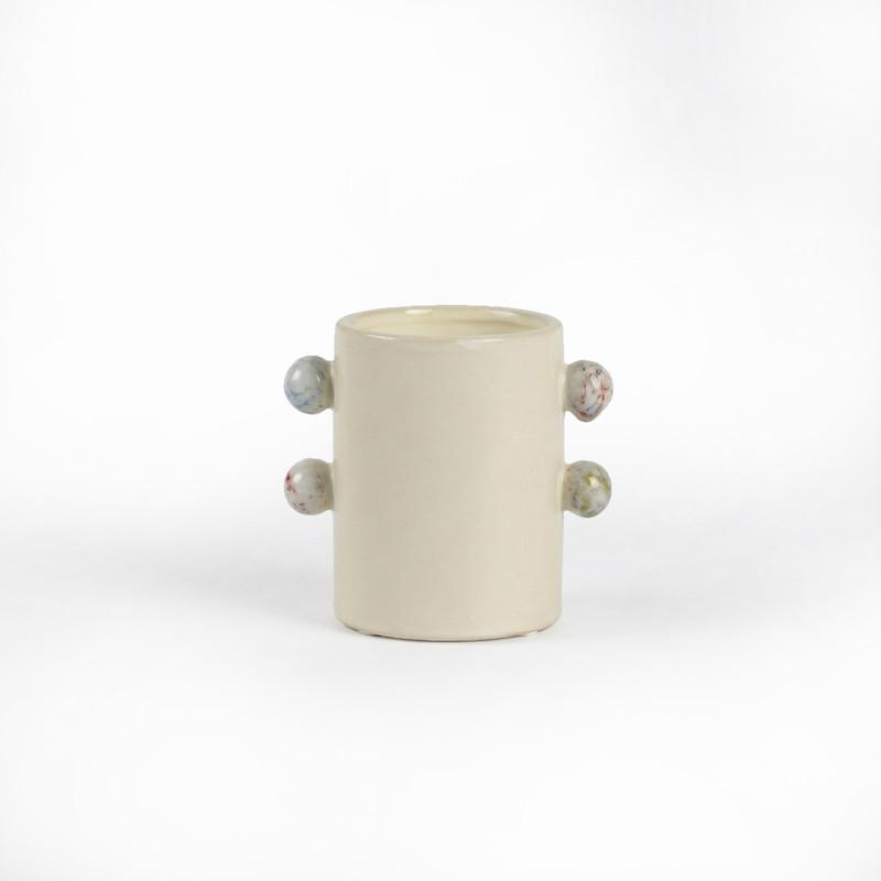 Лаконичная керамическая ваза, с выступающими декоративными деталями, отлично впишется в современный интерьер.
