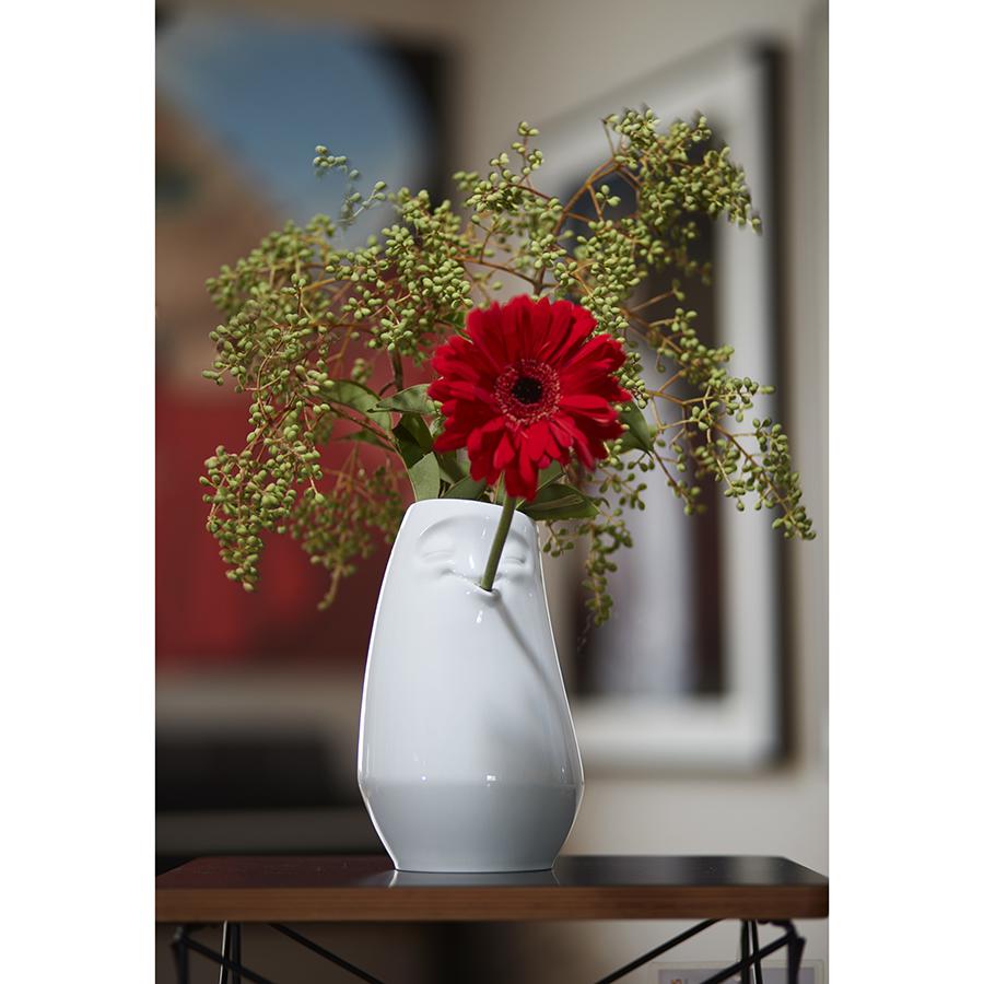 Оригинальная ваза с забавной рожицей станет настоящим украшением комнаты. Подойдет для небольших и средних букетов. Ваза выполнена из высококачественного фарфора. Поставляется в красивой подарочной упаковке. Можно мыть в посудомоечной машине.