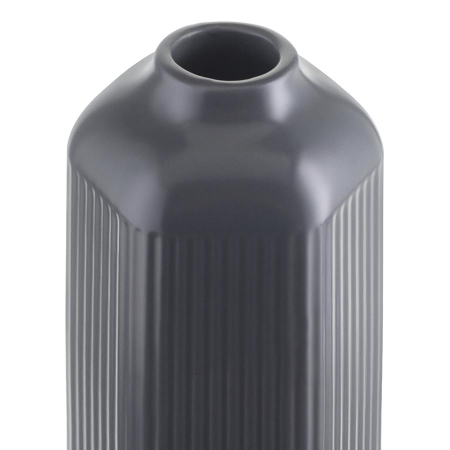 Ваза серого цвета из коллекции Edge подойдет как для букетов из живых цветов, так и для сухоцветов. Простая форма вазы с фактурными гранями и зауженной горловиной будет сочетаться с другими предметами из этой же коллекции, позволяя создавать интересные интерьерные композиции. Изделие выполнено из доломита, устойчивого к сколам, легкого и экологически чистого материала, снаружи и внутри покрыто матовой глазурью. Высота: 22 см. Объем: 1,1 л.