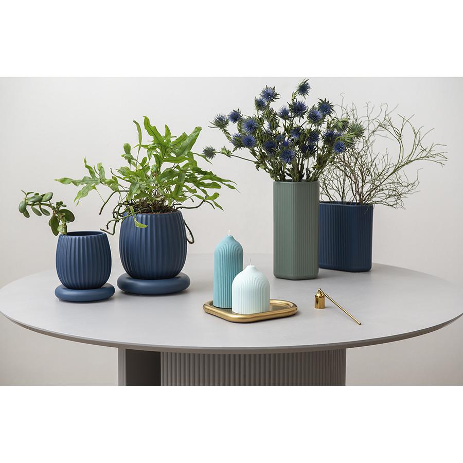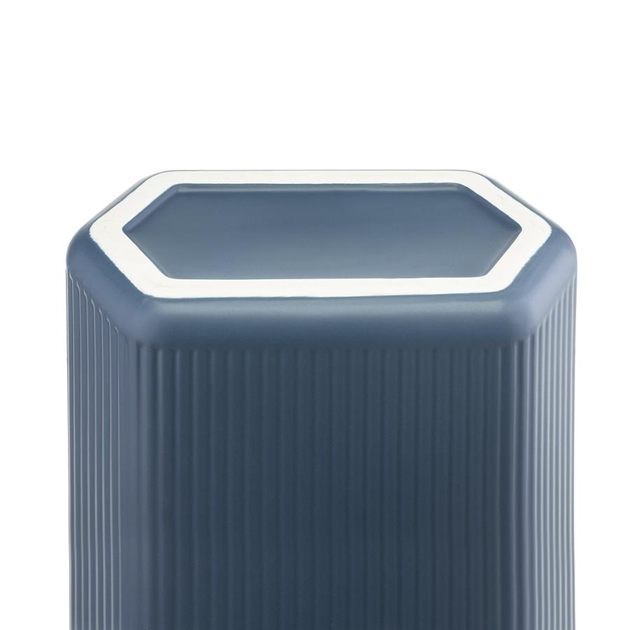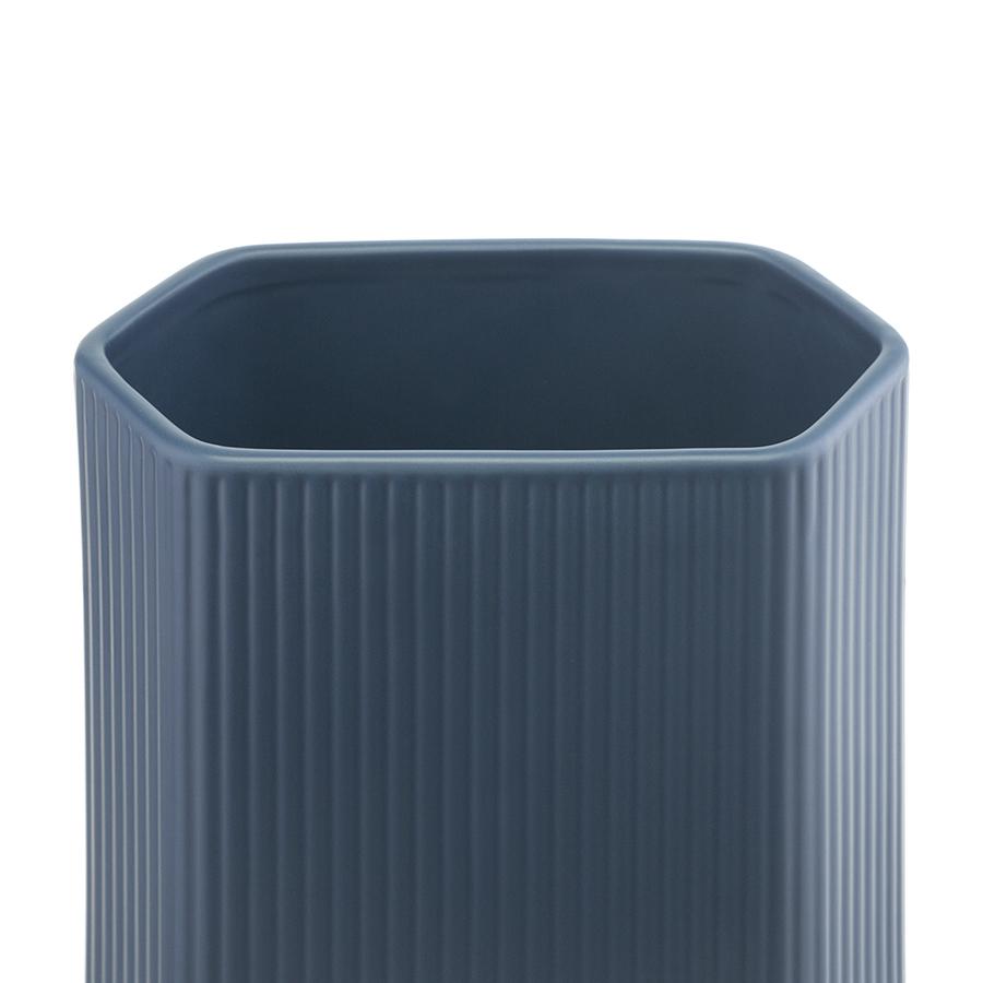 Ваза темно-синего цвета из коллекции Edge подойдет как для букетов из живых цветов, так и для сухоцветов. Простая форма вазы с фактурными гранями будет сочетаться с другими предметами из этой же коллекции, позволяя создавать интересные интерьерные композиции. Изделие выполнено из доломита, устойчивого к сколам, легкого и экологически чистого материала, снаружи и внутри покрыто матовой глазурью. Высота: 20 см. Объем: 2,4 л.