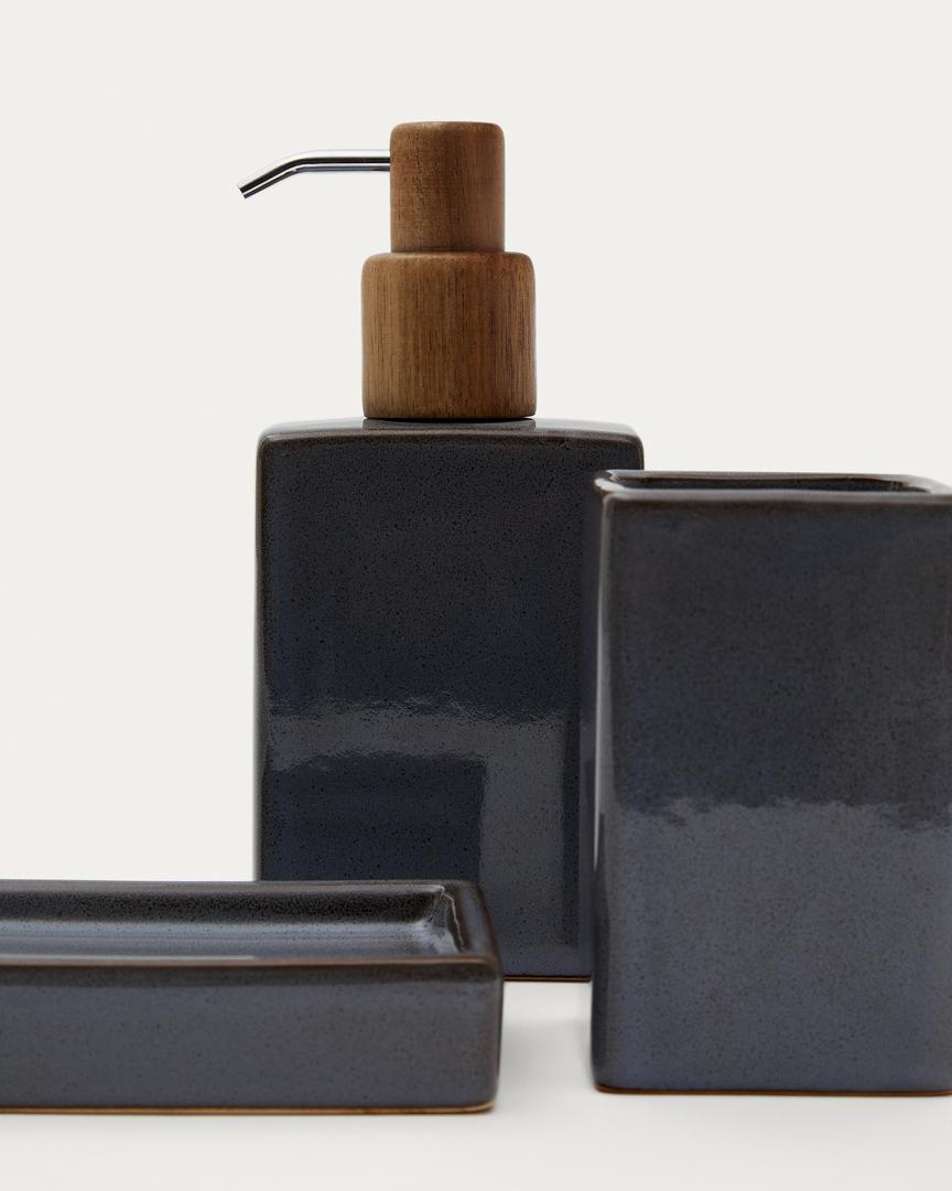 Аксессуары для ванной из коллекции Silvet – лаконичный дизайн и долговечность от фабрики La Forma (ex Julia Grup). Коллекцию Silvet отличает минималистский вид прямых и простых форм. Он добавит индивидуальности вашей ванной комнате и заявит о стиле в каждой детали. Глянец керамики в сочетании с древесиной – это красиво и практично. Будьте уверенны – коллекция Silvet заявит о себе смело! Коллекция Silvet состоит из трех предметов: мыльницы, дозатора для мыла, стакана для зубных щеток. Материал изготовления – керамика серого цвета с глянцевой отделкой. Колпачок дозатора сделан из натуральной древесины акации с масляной отделкой. Керамика не портится от влаги, перепада температур, экологична. Ее толстые стенки с обтекаемыми краями обеспечивают безопасность и надежность. Размеры изделий: мыльница: высота – 2,8 см, длина – 13,3 см, ширина – 8,7 см. стакан для зубных щеток: ширина – 7,2 – см, высота – 11,1 см, глубина – 7,2 – см. дозатор для мыла: ширина – 8,5 см, высота – 18 см, глубина – 5,5 см. Каждый предмет можно приобрести отдельно. Но полная коллекция безусловно усилит эффект обновления ванной комнаты.