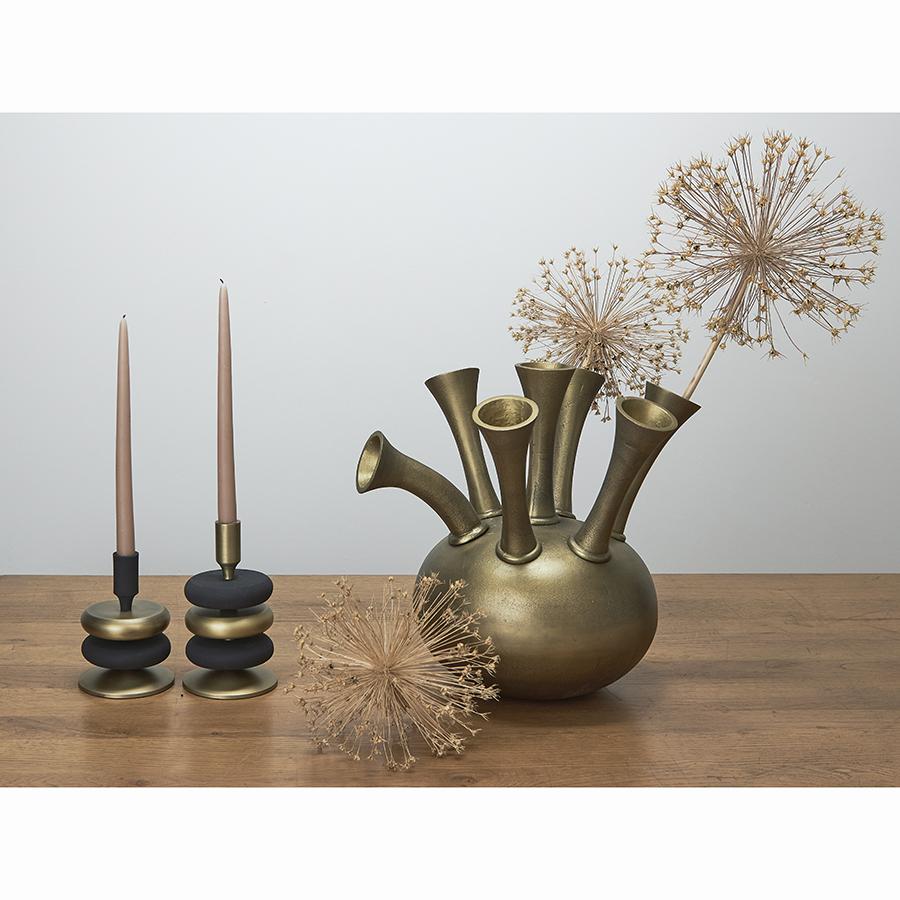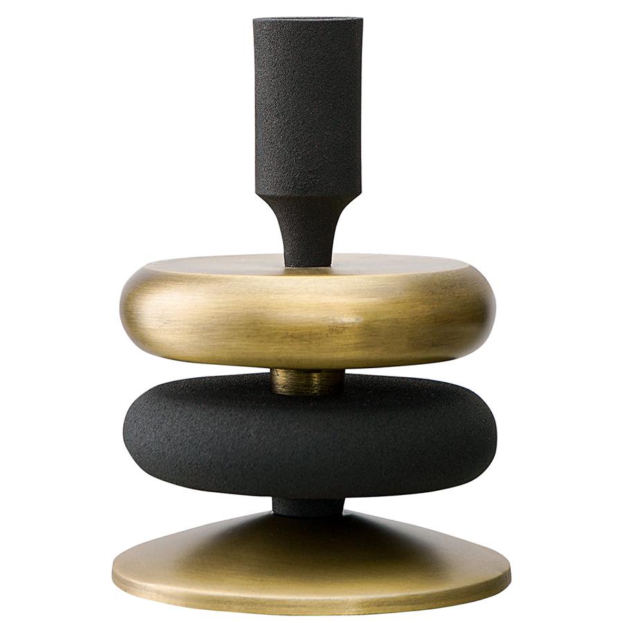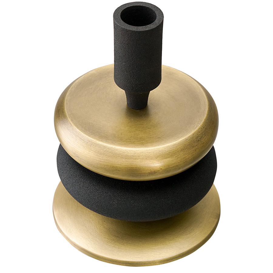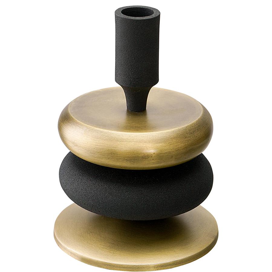 Декор Bergenson Bjorn Подсвечник stone, 17 см, черный/античная латунь арт. BB0000193