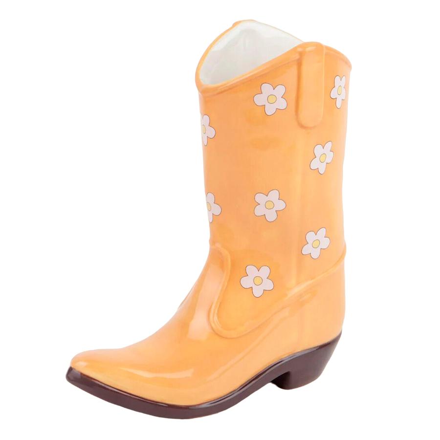 Ваза для цветов Rodeo в форме ковбойского сапога поможет освежить пространство и окунуться в захватывающую атмосферу Дикого Запада. Особенности и преимущества: - Изготовлена из устойчивой к износу и экологичной керамики. - Имеет необычный дизайн, который привлекает внимание. - Подходит для сухоцветов и живых цветов. Материал: керамика. Размер: 19,5х7,5х22,5 см. Цвет: желтый. Рекомендуется мыть вручную при помощи мягкой губки. Запрещается использование абразивных материалов и агрессивной бытовой химии.