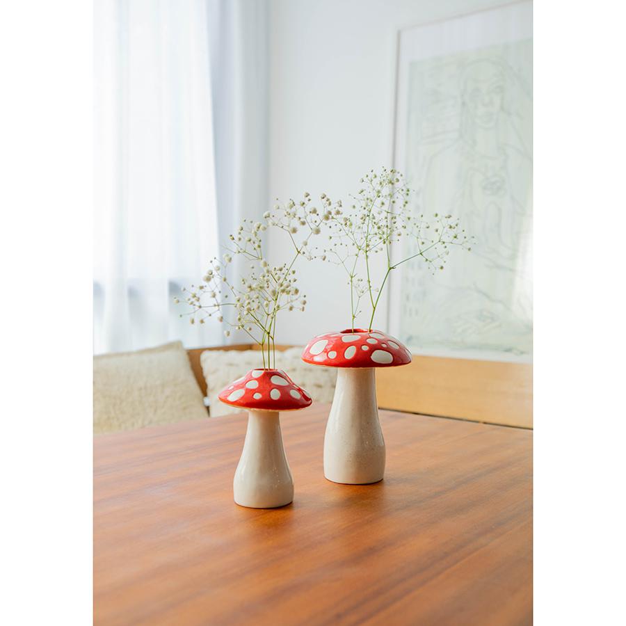 Ваза Amanita добавит в любое пространство свежий акцент и нотку иронии. Разместите в ней букет из живых цветов или сухоцветов, и ваш интерьер заиграет новыми красками! Особенности и преимущества: - Изготовлена из устойчивой к износу и экологичной керамики. - Имеет необычный дизайн в виде мухомора, который привлекает внимание. - Подходит для сухоцветов и живых цветов. Материал: керамика. Размер: 11х11х15 см. Рекомендуется мыть вручную при помощи мягкой губки. Запрещается использование абразивных материалов и агрессивной бытовой химии.