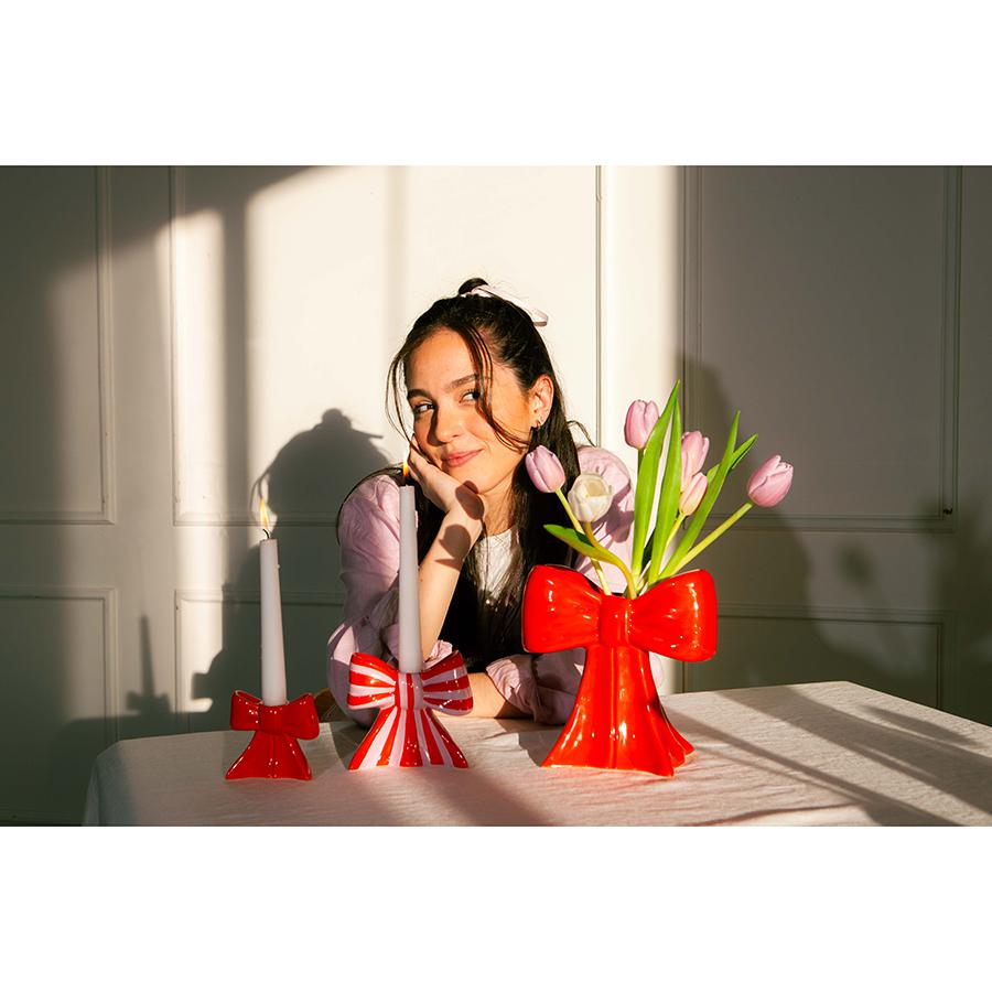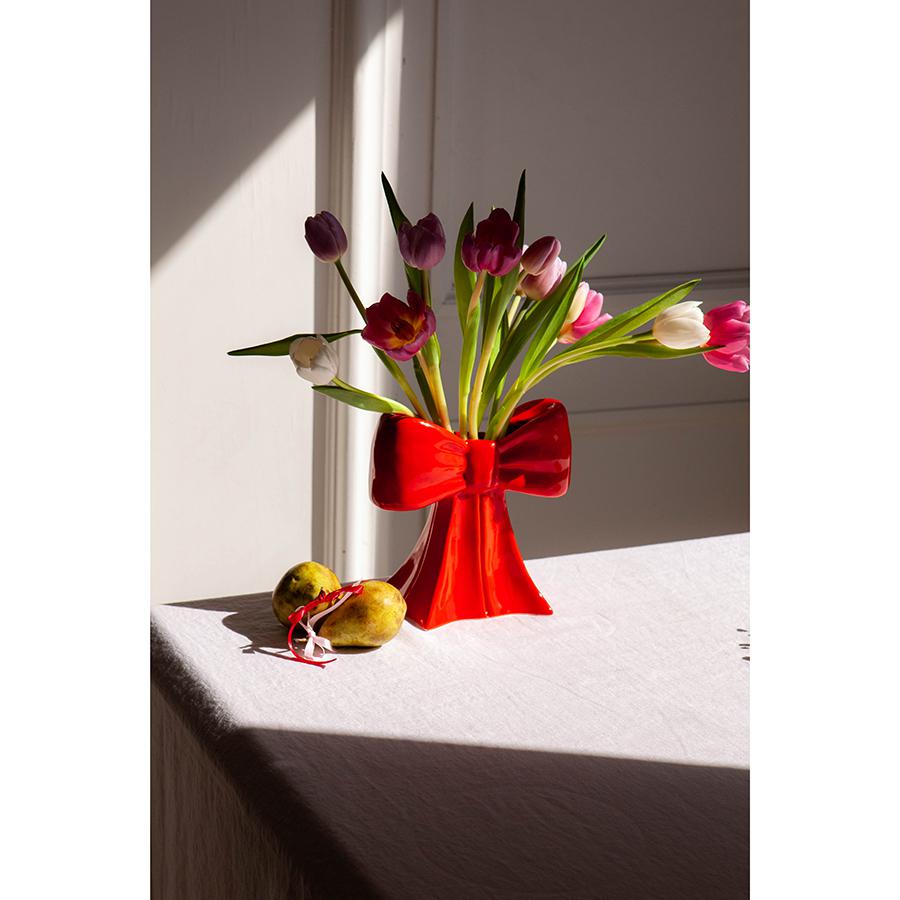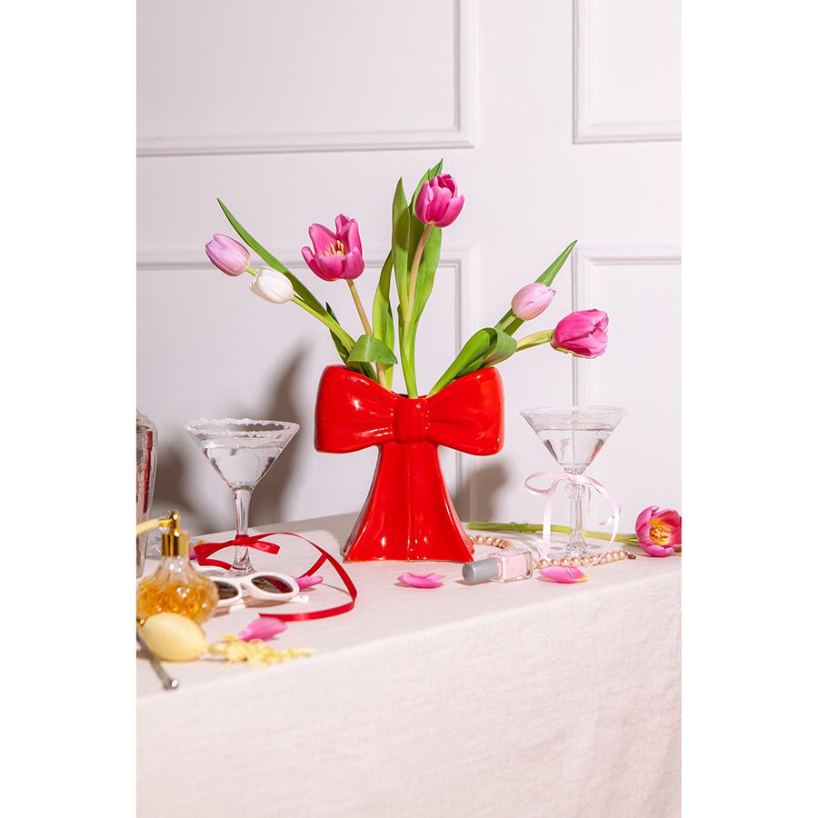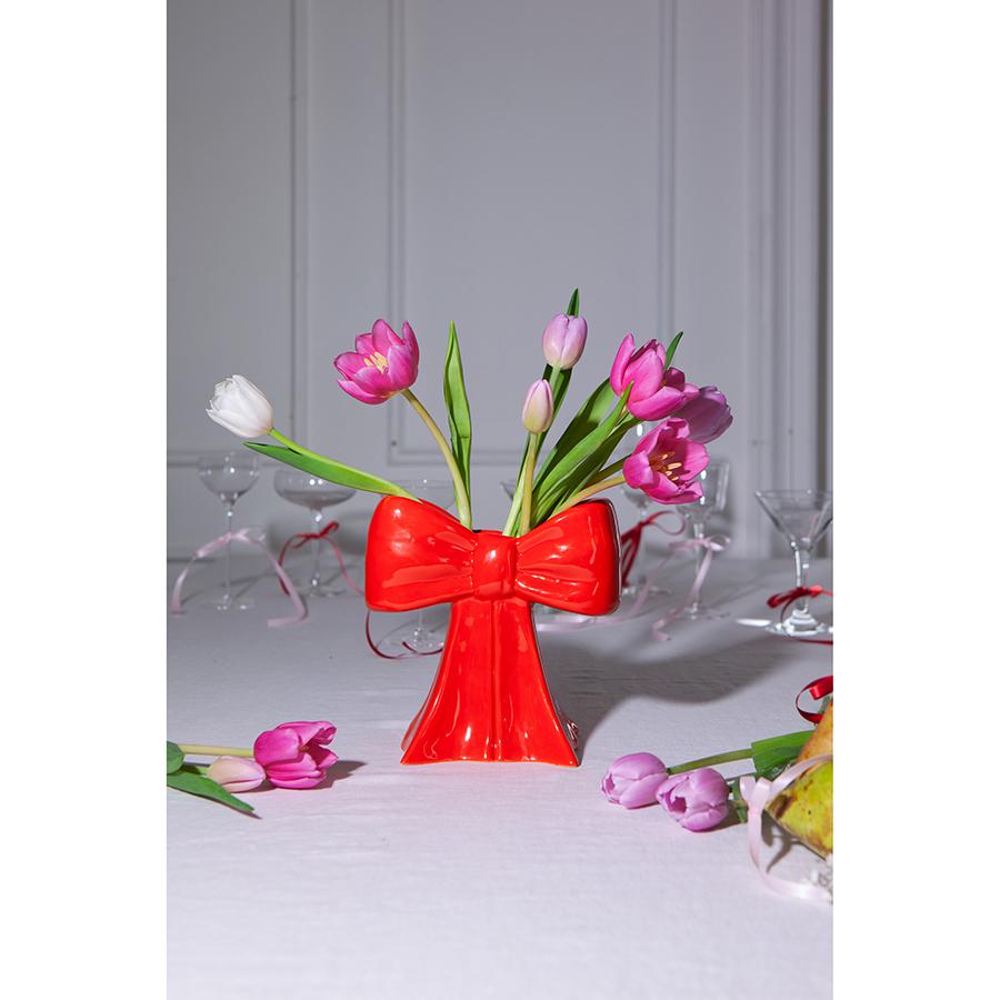 Ваза Bow создаст в вашем интерьере уютную атмосферу с нотками романтики. Сделанная из керамики в виде элегантного банта, она обязательно привлечет внимание и идеально подойдет для размещения небольших букетов или одиночных цветов. Особенности и преимущества: - Изготовлена из устойчивой к износу и экологичной керамики. - Имеет необычный дизайн в виде банта, который привлекает внимание. - Подходит для сухоцветов и живых цветов. Материал: керамика. Размер: 20x19x11 см. Цвет: красный. Рекомендуется мыть вручную при помощи мягкой губки. Запрещается использование абразивных материалов и агрессивной бытовой химии.