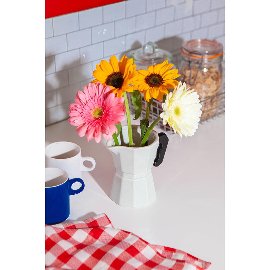 Ваза Moka из коллекции Good Morning станет интересным акцентом современного интерьера с любым оформлением. Необычный дизайн обеспечивает ей привлекательный внешний вид, а прочная керамика – долгий срок службы. Декоративный предмет идеально подойдет для размещения небольших букетов цветов. Особенности и преимущества: - Изготовлена из устойчивой к износу и экологичной керамики. - Имеет необычный дизайн в виде гейзерной кофеварки, который привлекает внимание. - Подходит для сухоцветов и живых цветов. Материал: керамика. Размеры: 12,5x14x16,5 см. Рекомендуется мыть вручную при помощи мягкой губки. Запрещается использование абразивных материалов и агрессивной бытовой химии.