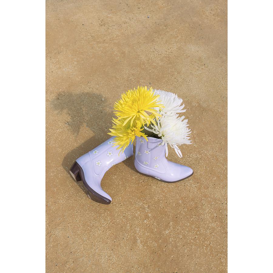 Ваза для цветов Rodeo в форме ковбойского сапога поможет освежить пространство и окунуться в захватывающую атмосферу Дикого Запада. Особенности и преимущества: - Изготовлена из устойчивой к износу и экологичной керамики. - Имеет необычный дизайн, который привлекает внимание. - Подходит для сухоцветов и живых цветов. Материал: керамика. Размер: 19,5х7,5х22,5 см. Цвет: лиловый. Рекомендуется мыть вручную при помощи мягкой губки. Запрещается использование абразивных материалов и агрессивной бытовой химии.