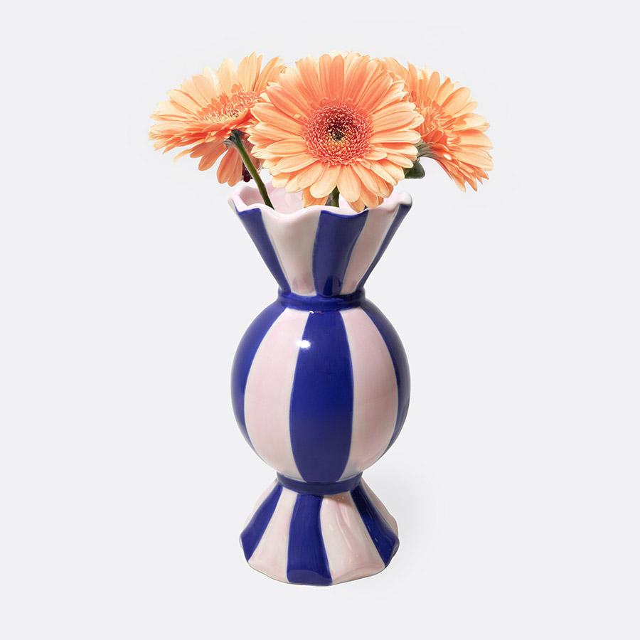 Украсьте вечер щепоткой карнавальной магии с оригинальной вазой из коллекции Funfair в форме большой конфеты. Эта вещица мгновенно переносит в мир, где пахнет сладкой ватой, слышен смех и горят разноцветные гирлянды. Особенности и преимущества: - Форма конфеты в обертке с эффектом скрученных кончиков вызывает мгновенную ностальгию и дарит эмоциональную связь с беззаботными моментами жизни. - Полосатая структура и глянцевая поверхность изделия создают уютное, мерцающее свечение. - Ваза будет одинаково хорошо смотреться на обеденном столе или на каминной полке в гостиной. - Изделие выполнено из экологичной керамики высокого качества, что гарантирует долгий срок службы. Материал: керамика. Размер: 9x9x20. Цвет: бело-синий Рекомендуется мыть мягкой губкой без использования абразивных средств и агрессивной бытовой химии.