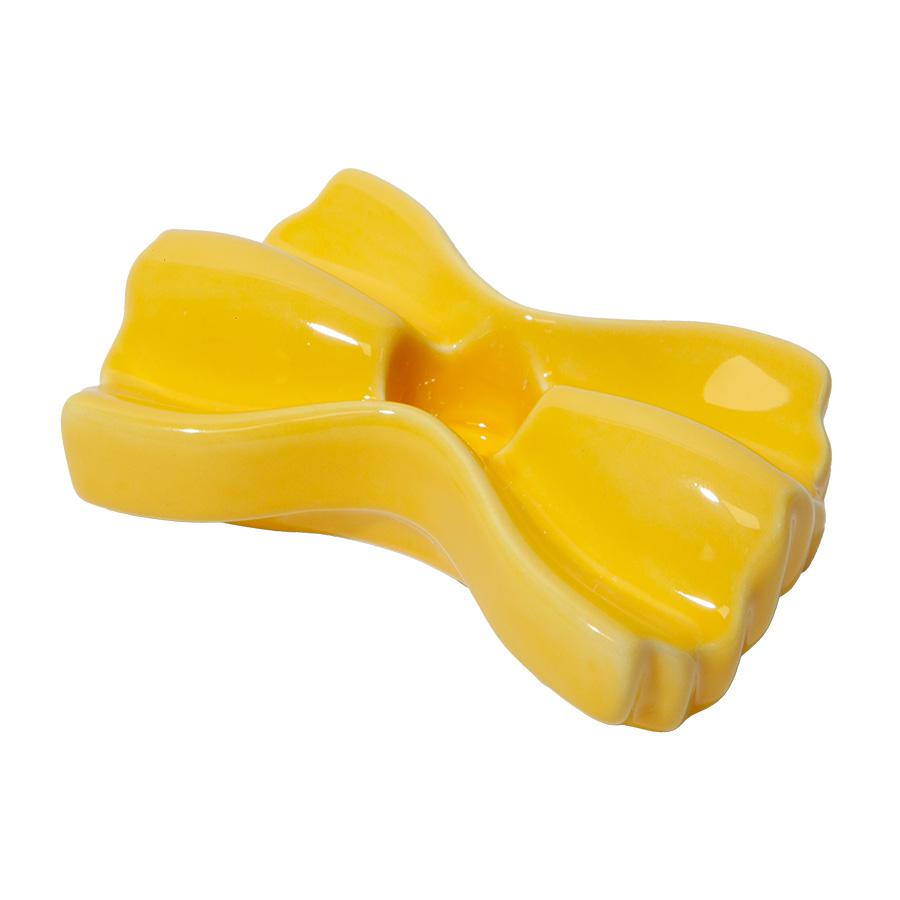 Форма подсвечника из коллекции Dolce Vita повторяет изящную пасту-«бантики». Ребристая текстура керамики тщательно проработана, создавая удивительно реалистичную форму. Эта маленькая деталь сервировки вызывает ассоциации с беззаботным ужином на итальянской вилле, вкусом свежего соуса песто и легкостью бытия.. Особенности и преимущества: - Подсвечник соединяет кулинарную и природную эстетику, наполняя образ теплым юмором. - Аксессуар будет одинаково уместно смотреться на обеденном столе во время ужина или на полке в гостиной, создавая особенное настроение. - Изделие выполнено из качественной керамики, которая надолго сохранит безупречный вид и подарит приятные тактильные ощущения. - Подсвечник устойчив, надежно удерживает свечу, предотвращая опасность возгорания. Материал: керамика. Размер: 6,5х10х2,7 см. Цвет: желтый. Рекомендуется мыть мягкой губкой без использования абразивных средств и агрессивной бытовой химии.
