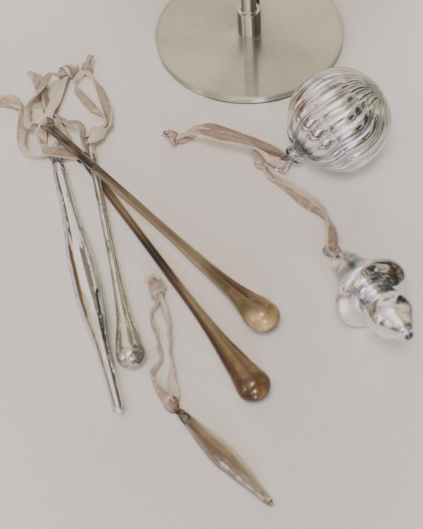 Этот набор подвесных украшений из переработанного боросиликатного стекла имеет удлиненный силуэт, который придаст изысканность любому помещению. Глянцевая поверхность и изящные линии рассеивают свет и создают едва заметные блики, идеально подходящие для украшения веток, окон или углов. Прочность боросиликатного стекла обеспечивает безопасное и долговечное использование, сохраняя форму и блеск с течением времени.