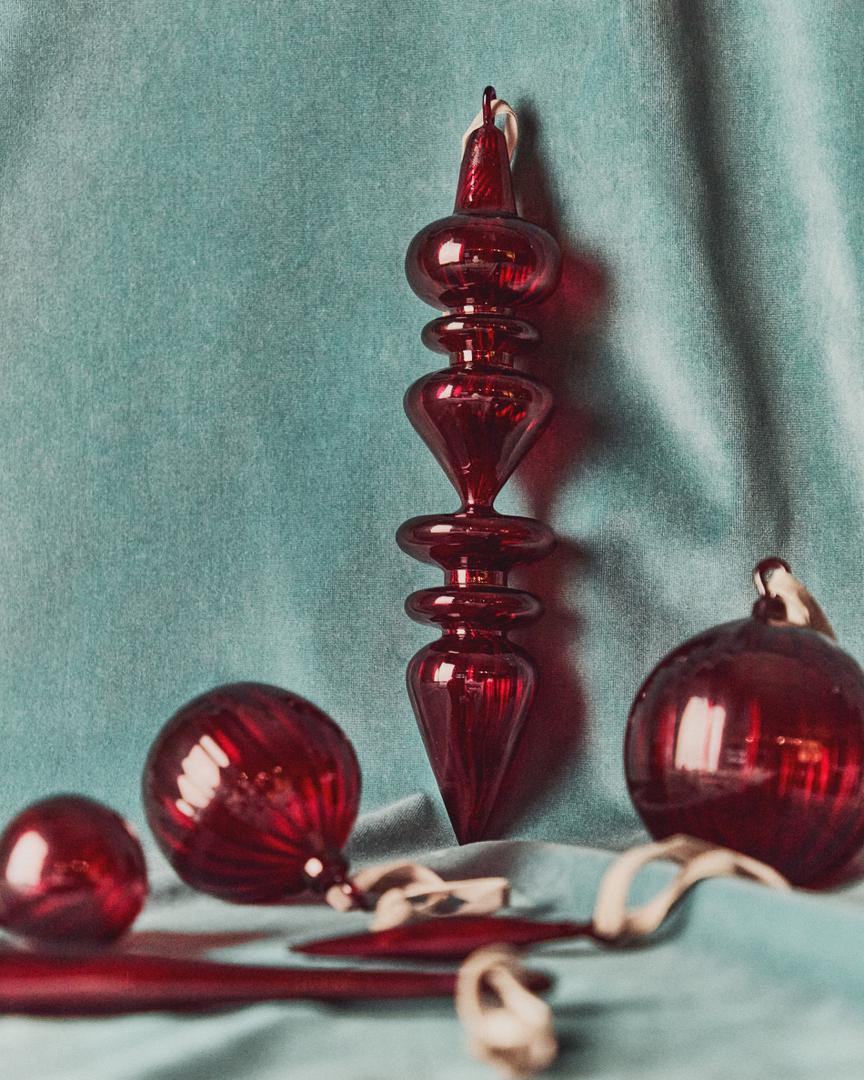 Декор La Forma (ех Julia Grup) Набор из 2 подвесных украшений Lioren из переработанного красного стекла, 31 см арт. 448227