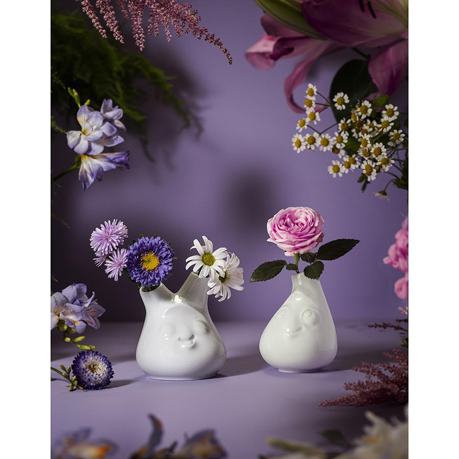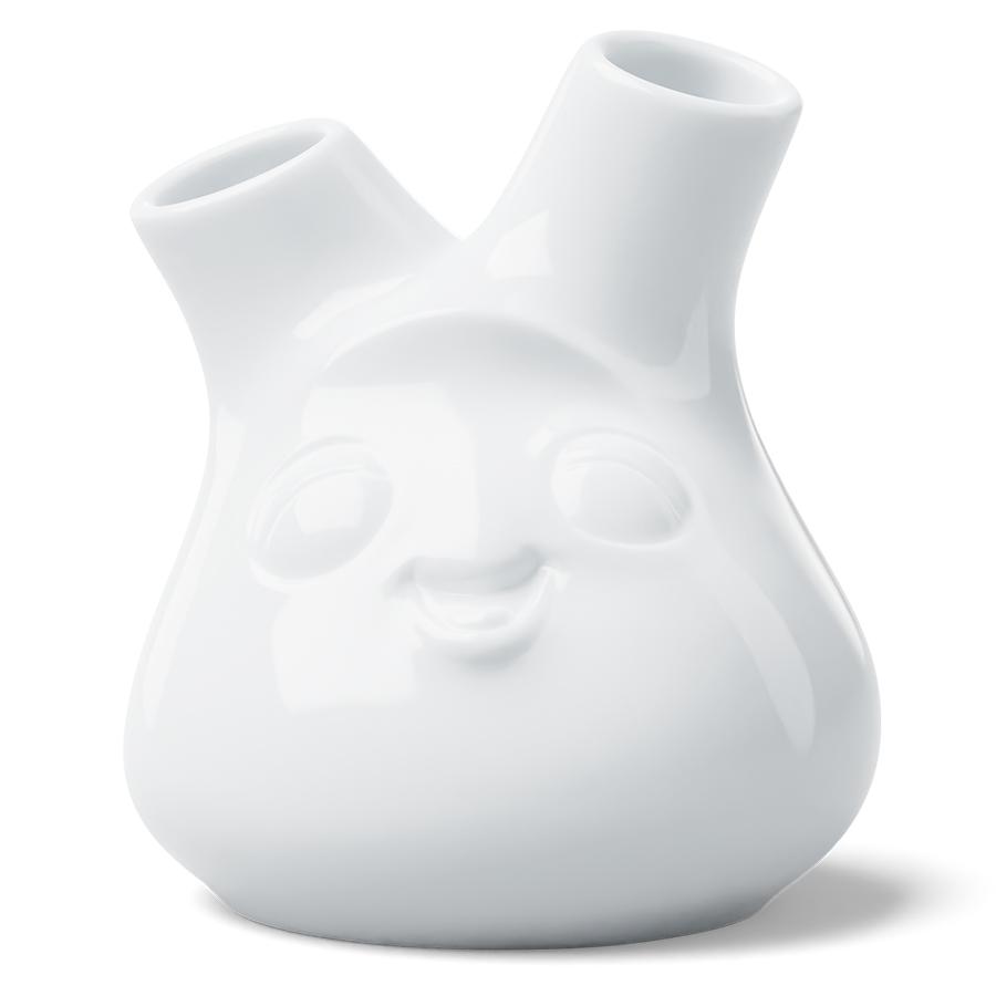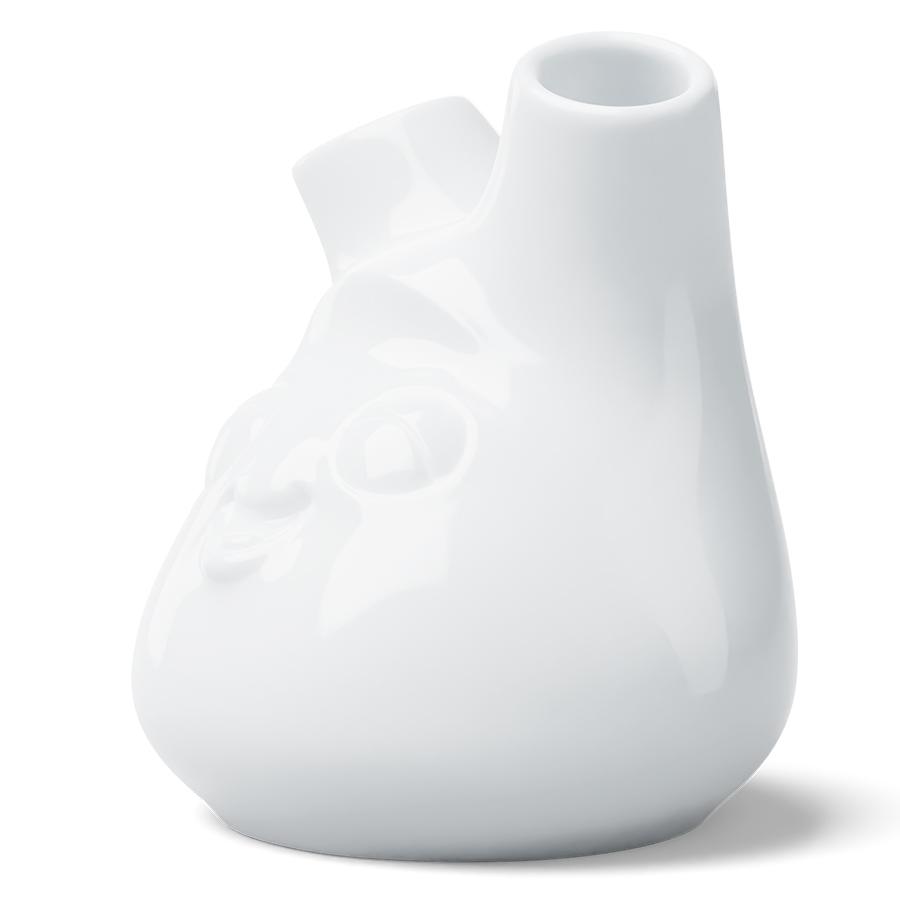 Ваза Cheeky освежит интерьер и привнесет в общую атмосферу комнаты нотки иронии. Она будет не только эффектно демонстрировать ваши любимые цветы, но и добавит капельку радости в каждый уголок дома. Поставьте ее на стол, полку или подоконник, и она станет центром притяжения взглядов! Изделие выполнено из высококачественного фарфора, покрытого глазурью, что обеспечивает ему презентабельный вид и долгий срок службы. Ваза имеет два отверстия и подходит как для одиночных цветков, так и для мини-букетов. Товар поставляется в подарочной упаковке. Материал: фарфор. Высота: 10 см. Диаметр вазы: 8,5 см. Диаметр верхнего отверстия: 1,5 см. Цвет: белый. Можно мыть в посудомоечной машине.