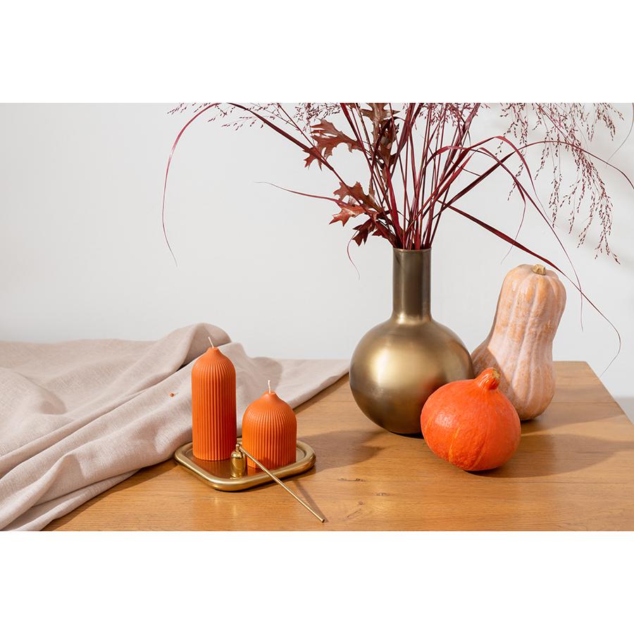 Свеча декоративная оранжевого цвета из коллекции Edge в современном дизайне, вдохновленном русскими традициями, отлично подойдет для домашнего декора и создания уютной атмосферы в интерьере. Фактурные грани и округлая поверхность свечи отсылают нас к образу купола – простая и лаконичная форма, плавные изгибы и идеальные пропорции. Изготовлена вручную, без ароматизаторов, поэтому может использоваться для сервировки праздничного стола и повседневных ужинов. Свеча не коптит, так как выполнена из парафина с соевым и пчелиным воском, имеет фитиль из натурального хлопка. Время непрерывного горения – 80 часов. Размер свечи: 6,5х16,5 см. Упаковка: крафтовая коробка. Состав: 55% парафин 40% соевый воск 5% пчелиный воск ! Регулярно подрезать фитиль, чтобы его высота не превышала 6-8 мм. Благодаря этому пламя будет ярким и ровным. ! Не оставлять свечу на ветру или сквозняке – это может привести к неравномерному горению и, как следствие, – к образованию сильных подтеков. ! Зажигать свечу, предварительно расположив ее на подсвечнике, если она идет без специального стакана. ! Не оставлять горящую свечу без присмотра. ! Использовать вдали от легковоспламеняющихся материалов. ! Беречь от детей и домашних животных. Важно! Если свеча начала подтекать, огонь следует затушить и дать воску застыть, после чего можно будет зажечь ее повторно. В противном случае может образоваться сильный подтек, а свеча утратит красивый внешний вид и свои первоначальные качества.