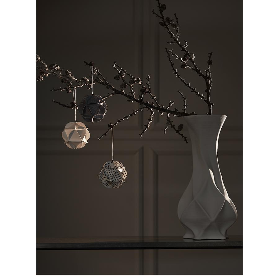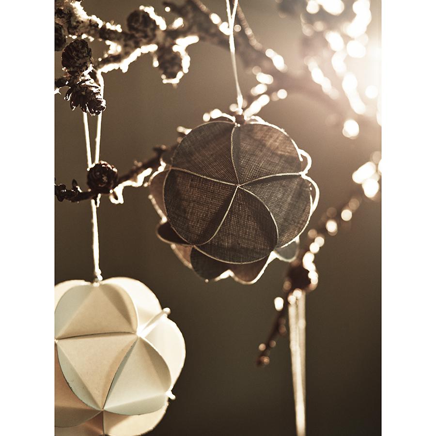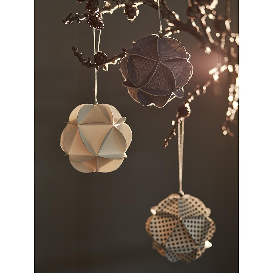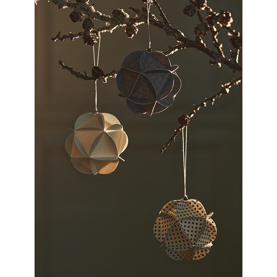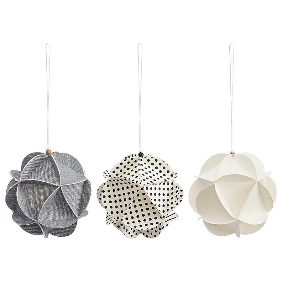 Набор украшений из бумаги Fashion moments из коллекции New Year Essential – простой способ добавить в новогодний наряд вашей ёлки стильный акцент и привнести в праздничный интерьер нотку ностальгии и уюта. Особенности и преимущества: - Легкие украшения из бумаги подходят как для искусственных, так и натуральных елей. - Игрушки уже идут с нитками, что позволяет легко разместить их на еловых ветках или предметах интерьера. - Шарики в базовых цветах великолепно дополняют друг друга и отлично сочетаются с декором различных оттенков. Материал: бумага. Размеры: 9,5х9,5х9,5 см. Количество украшений в наборе: 3 шт.
