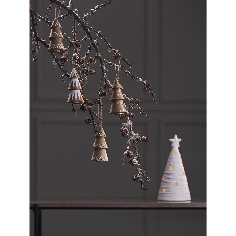 Набор елочных игрушек из папье-маше Zero waste из коллекции New Year Essential привнесет в интерьер ностальгические нотки и напомнит о временах, когда новогодние украшения создавались вручную и носили особенный характер. Особенности и преимущества: - Украшения из папье-маше смотрятся необычно, что позволяет использовать их в качестве интересных акцентов. - Благодаря устойчивому к износу материалу изделия будут служить ни один год, сохраняя привлекательный вид. - Игрушки легкие, не оттягивают ветки и уже оснащены веревочками, за которые их можно легко подвешивать на ёлку. Материал: папье-маше. Размеры: 5х5х10,7 см. Количество украшений в наборе: 4 шт.