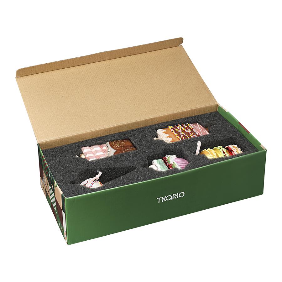 Добро пожаловать в мир сладких сюрпризов с набором ёлочных украшений Glimmer из коллекции New Year Essential! Эти волшебные угощения добавят яркие краски и радостные эмоции в каждое мгновение праздника. Представьте себе сияние огоньков, отражающееся в глазури мороженого или плитке шоколада, – невероятное зрелище, не правда ли? Особенности и преимущества: - Яркий, запоминающийся дизайн. - Долговечный материал. - Наличие петелек для подвешивания на елку и предметы интерьера. Материал: стекло. Размеры: 6х2,5х15 см; 5,1х2,1х12,7 см; 5,7х5,7х10,9 см; 7х4,5х10,4 см; 5,7х5,7х14,5 см. Количество в наборе: 5 шт.