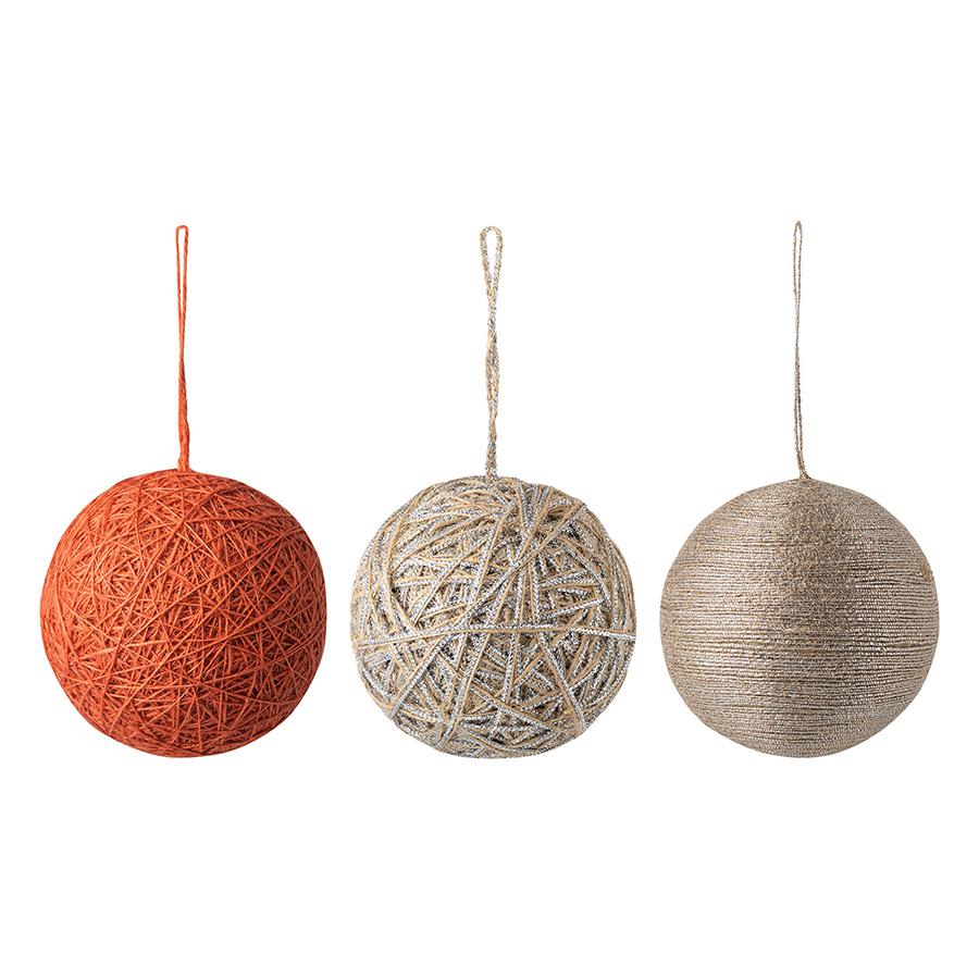 Ёлочные украшения Trendy из коллекции New Year Essential добавят в праздничный интерьер ощущение уюта и домашнего тепла. Милые шарики, похожие на клубочки пряжи, помогут перенестись в прошлое, напомнив о бабушкиных теплых свитерах, добрых улыбках и самых счастливых вечерах в кругу семьи. Особенности и преимущества: - Все предметы из набора имеют свой уникальный дизайн и великолепно дополняют друг друга. - Износостойкие материалы обеспечивают изделиям практичность и долгий срок службы. - Благодаря оптимальному диаметру эти шары хорошо заметны на ёлке, при этом не перегружают ее. - Украшения оснащены веревочками, что позволяет легко размещать их на еловых ветках и предметах интерьера. Материалы: полипропилен, полиэстер, хлопок, джут. Размеры: 10,2х10,2х10,2 см. Количество в наборе: 3 шт.