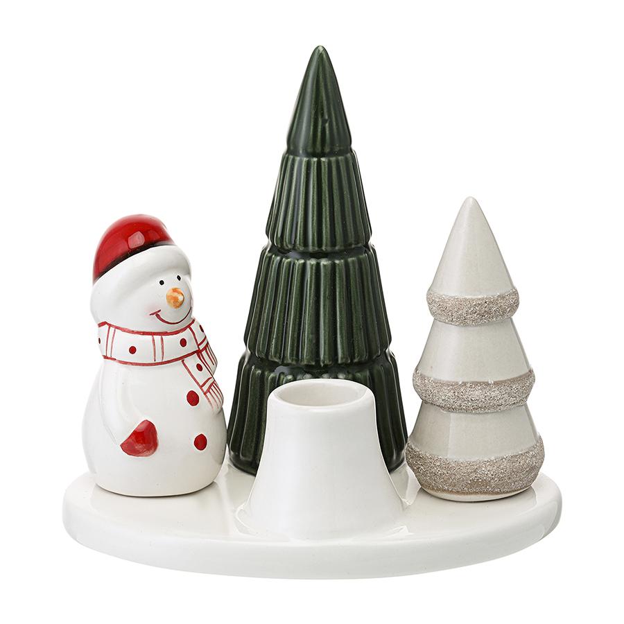 Представьте уютный зимний вечер, за окном падает снег, а в доме мерцает теплый огонек свечи, освещая милую композицию со Снеговиком и ёлочками. Подсвечник новогодний Enchanted forest из коллекции New Year Essential – не просто элемент декора, а настоящая сказка, которая оживает у вас дома. Особенности и преимущества: - Изделие из доломита не боится износа и сохраняет привлекательный вид на протяжении многих лет. - Подсвечник имеет устойчивое основание и подходит для использования с тонкими свечами. - Компактные размеры позволяют разместить его в любом уголке дома для создания новогоднего настроения. Материал: доломит. Размеры: 15x9,9x14,5 см.