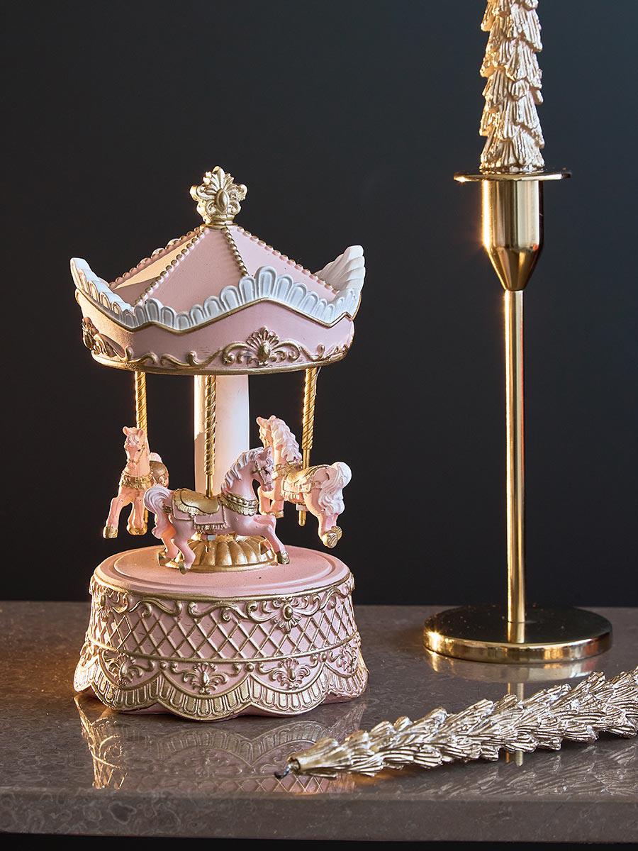 Зефирно-розовый новогодний музыкальный декор Magic Melody из коллекции New Year Essential словно оживляет волшебную сказку, где каждый поворот приносит новые чудеса и дарит надежду на исполнение желаний. Механическая карусель с традиционной рождественской мелодией символизирует преемственность поколений и сохранение семейных обычаев, когда каждое украшение несет особый смысл. Особенности и преимущества: - Чтобы карусель вращалась, нужно крутить ручку, расположенную сбоку на корпусе. - Классическая рождественская мелодия Jingle Bells начинает играть вместе с вращением карусели. - Изделие выполнено из полирезина – плотного, приятного на ощупь, небьющегося материала, поэтому безопасно для детей. - Яркие краски декора не тускнеют со временем, безопасны для человека и домашних животных. Материалы: полирезин. Размеры: 11,7х11,7х20,7 см. Можно протирать от пыли сухой тряпочкой или чистить мягкой щеткой.