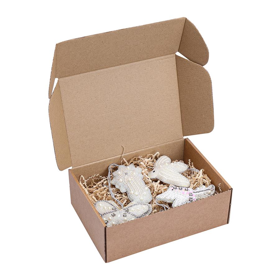 Каждый предмет из этого набора – напоминание о доброй новогодней сказке, где есть место волшебству. Расшитые вручную игрушки подарят вашему дому всю теплоту рук искусных мастеров и сделают праздник еще более ярким и запоминающимся. Особенности и преимущества: - Игрушки с мягким основанием не разобьются, поэтому подходят для украшения елки в доме, где есть маленькие дети. - Бусины и бисер не теряют насыщенности цветов на протяжении долгих лет эксплуатации. Материалы: ткань, поролон, бусины, блестки. Высота каждой игрушки: 10 см. Количество в наборе: 4 шт. Можно протирать от пыли сухой тряпочкой или чистить мягкой щеткой.