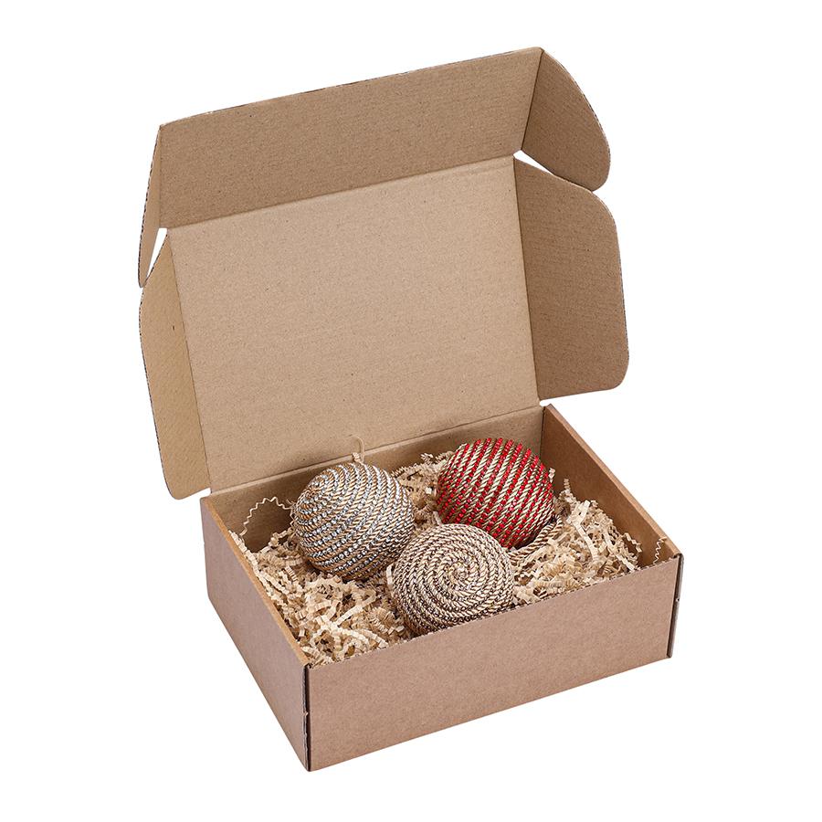 Словно связанные заботливыми руками, эти шарики идеально подходят для новогодней елки, оформление которой выдержано в стиле ретро. Мягкие оттенки игрушек, традиционное плетение и легкий блеск наполняют окружающую атмосферу теплом и уютом. Особенности и преимущества: - Шарики выполнены из прочного и безопасного для здоровья пластика, который не разбивается при падении. - Каркас шариков декорирован веревочками, сплетенными из полиэстеровых нитей, которые со временем сохраняют первоначальный внешний вид и насыщенность цвета. - Благодаря оптимальному диаметру, эти игрушки хорошо видны на елке, а за счет сдержанного дизайна они не загромождают пространство. Материалы: пластик, полиэстер. Диаметр каждого шара: 7 см. Количество в наборе: 3 шт. Можно протирать от пыли сухой тряпочкой.