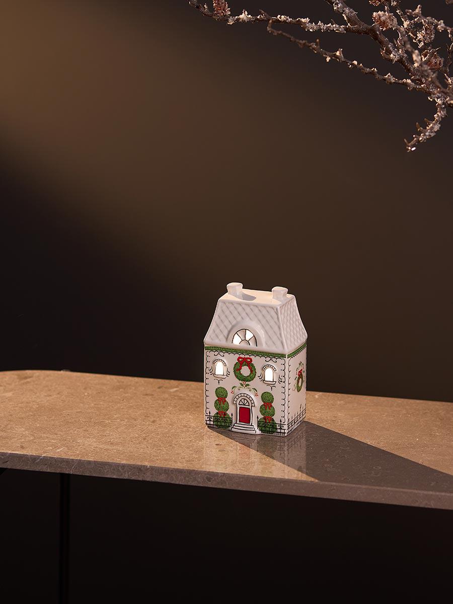 Домик с подсветкой Olgod из коллекции New Year Essential словно сошел со страниц любимых сказок. Он, как проводник в мир детства, где каждый день наполнен искренней радостью. В каждой его детали ощущается уют, предвкушение чуда и безграничная вера в то, что самые заветные мечты обязательно сбудутся. Вы можете использовать этот домик в качестве праздничного декора и для создания особой атмосферы в темное время суток. Особенности и преимущества: - Домик изготовлен из доломита – экологичного, прочного и долговечного материала. - Имеет компактные размеры, что позволяет легко размещать его в любом удобном месте, создавая стильные композиции и акценты. - Подсветка создает волшебную атмосферу, наполняя пространство мягким, теплым светом. - Для работы требуются 2 батарейки типа АА (пальчиковые), которые не входят в комплект. Материалы: доломит. Размеры: 10,4х7х16 см. От пыли и загрязнений можно протирать мягкой салфеткой. Запрещается использование абразивных материалов и агрессивной бытовой химии.