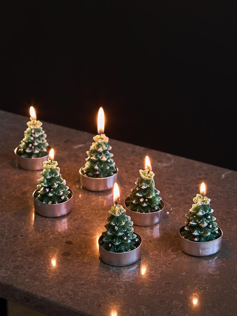 С набором декоративных свечей Enchanted woods из коллекции New Year Essential у вашей новогодней красавицы появятся подружки-помощницы, которые привнесут в праздничную атмосферу дома теплоту и ласковый свет живого огня. Маленькие свечи-елочки можно использовать в сервировке рождественского стола или составить из них красивую композицию с мерцающими елочными шариками, гирляндами, мишурой. Особенности и преимущества: - Свечи имеют устойчивое основание, но под них лучше использовать специальные подсвечники, чтобы плавящийся воск не попадал на столешницу или другую поверхность. - Изделия из качественного парафина при горении не выделяют токсичных веществ, поэтому безопасны для здоровья человека и домашних животных. Материалы: парафин. Размеры: 3,8х3,8x5,8 см. ! Не оставлять без присмотра горящую свечу ! Использовать вдали от легковоспламеняющихся материалов ! Беречь от детей и домашних животных ! Зажигать свечу, предварительно расположив ее на подсвечнике